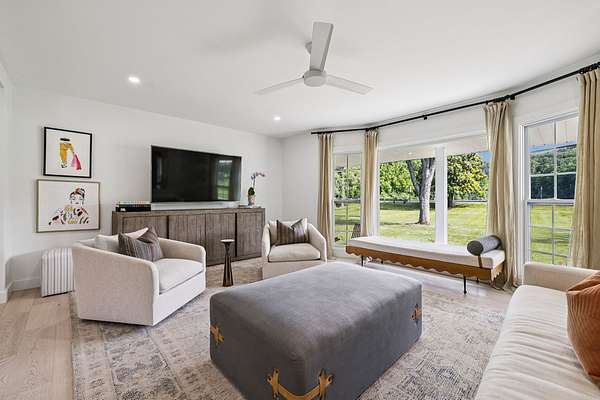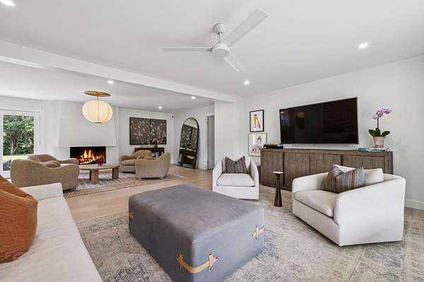 Outside, the expansive, level grounds create a private setting with endless potential—envision a resort-style pool, guest house, or curated outdoor living space.