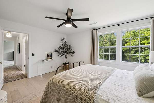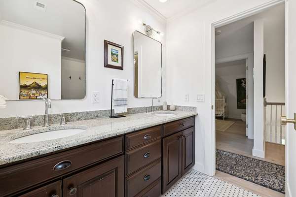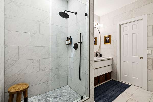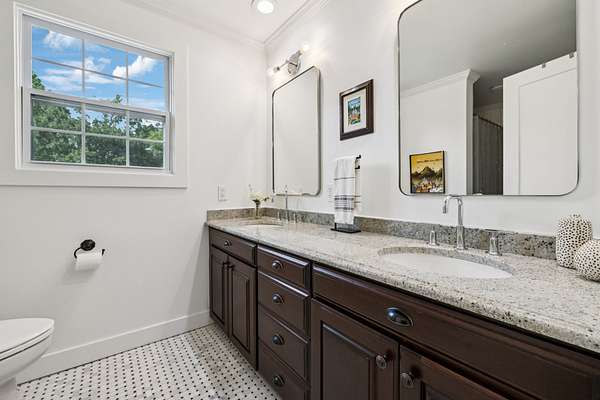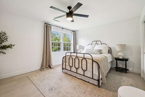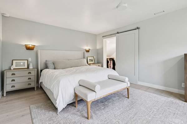 Upstairs, the serene primary suite provides a true escape, complete with a spa-inspired bath and a generous custom closet.