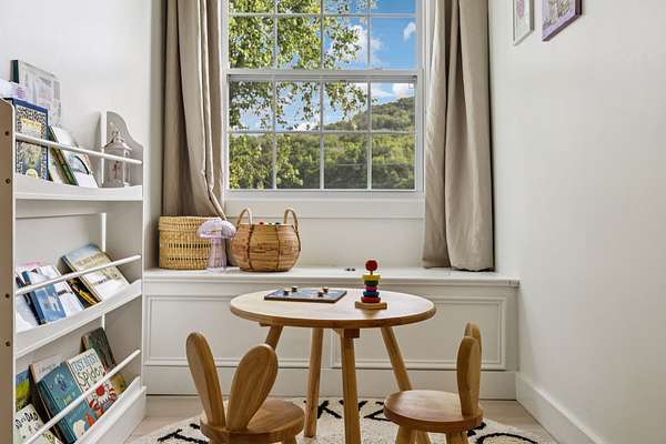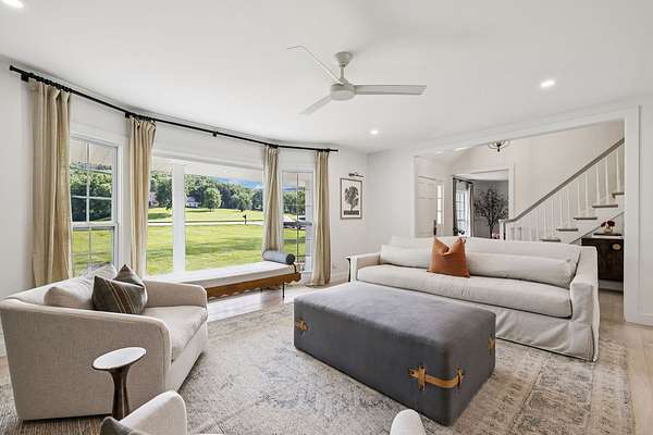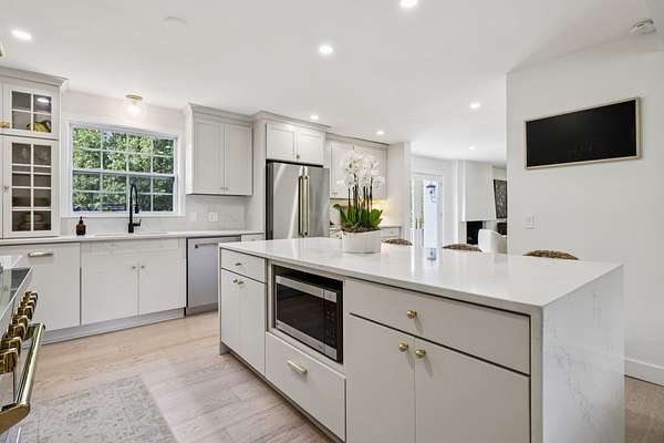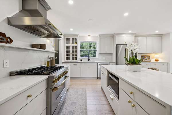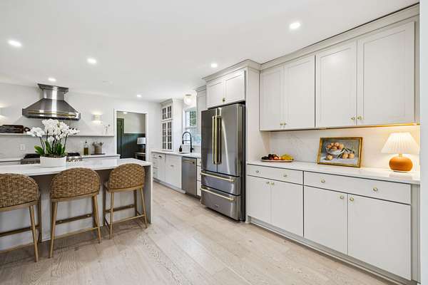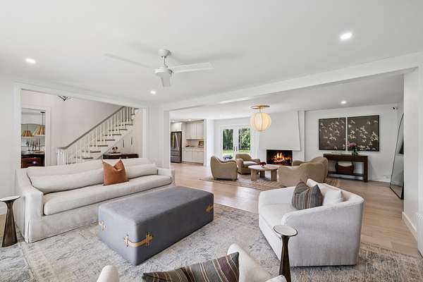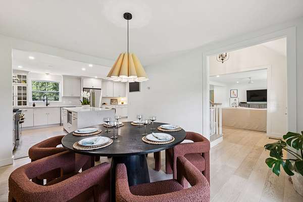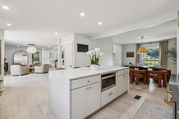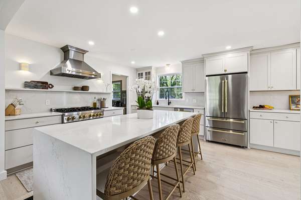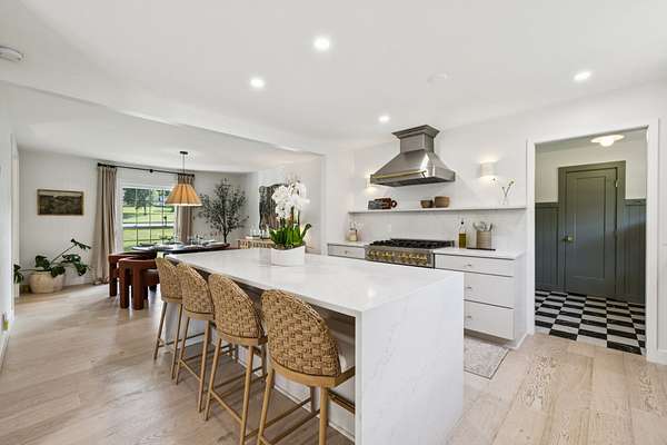 Sunlight pours into the open-concept living spaces, where a beautifully appointed kitchen anchors the home—perfect for quiet mornings, gathering with family, or hosting with ease.