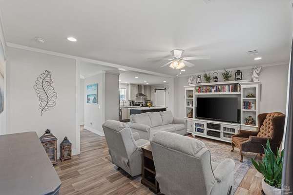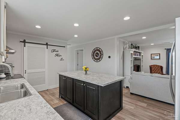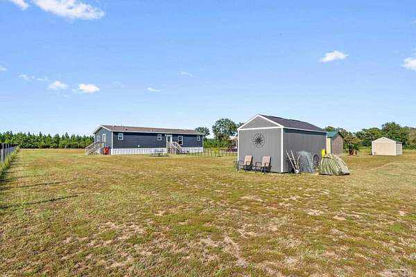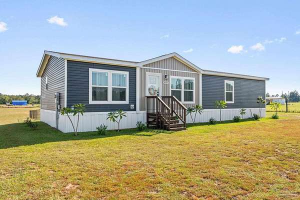 Country Living! Priced at 235,000! Almost 2 acres out in the country, yet just 20 minutes drive to Milton or 8 minutes to Jay. Like new manufactured home that is sparkling clean and move in ready. From the moment you step in the door you see how spacious and open this home is. The living room is a fantastic size and flows to the dining room and kitchen. The kitchen is amazing with a large island and lots of cabinets. The dining room overlooks the back yard. There is a great sized laundry room that the seller uses as a pantry off the kitchen. The primary bedroom is a good size and has a big walk in closet, double vanity and shower. The additional 2 bedrooms are on the other side of the home and share the hall bath. Beautiful neutral colors throughout the home makes it easy to make it yours! The acreage is cleared and has a new storage shed. Plenty of room to build a pole barn or workshop, plant fruit trees, grow a huge vegetable garden and raise chickens! There are endless possibilities with this property!