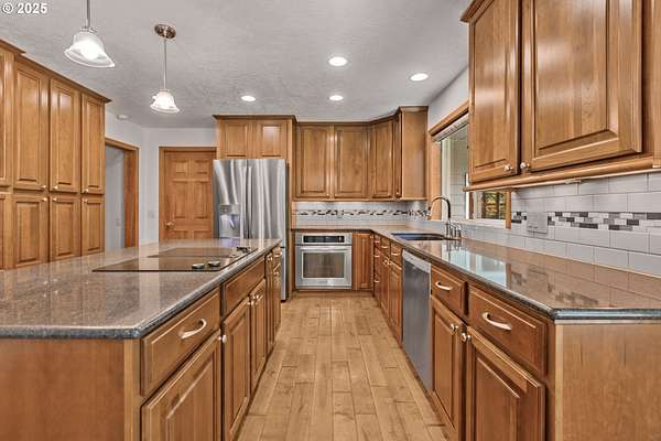 - Builtin Oven, Cook Island, Cooktop, Dishwasher, Island, Microwave, Pantry, Plumbed For Ice Maker, Stainless Steel Appliance