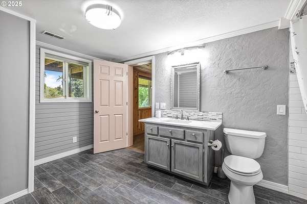 Privacy in the heart of the French Prairie farming community! The ultimate property for those wanting a low-maintenance property while enjoying the seclusion that comes with being the last house on a dead-end road without another home in sight! Most of the acreage is a natural wildlife haven, a year round creek with small wooded areas that doesn't require any maintenance and is only accessible by boat! For those wanting a natural retreat to call home that offers privacy and solitude, this is it! The main level includes the kitchen, dining, master bedroom and living rooms, all with high end finishes and a cozy floorplan. Sit on the back deck and overlook the beauty and wildlife of Champoeg creek or enjoy an afternoon BBQ with friends. Downstairs you will find two more bedrooms and a spacious family room, complete with new flooring and a large full bathroom. There is no lack of storage space downstairs either, with multiple closets to tuck your supplies or equipment out of sight. Step directly outside to a covered patio and take a stroll through the manicured lawn while enjoying the beautiful and mature landscaping. The office attached to the garage is a perfect space for those who want to work from home. And for those who drive an EV, charge it up overnight in the garage! Don't miss the chance to enjoy everything this home has to offer. Only 8 minutes from the Woodburn Outlet malls, 9 minutes to freeway access and only 45 minutes to downtown Portland, this home is close to the things you need. Schedule a showing today and come see this private retreat!
