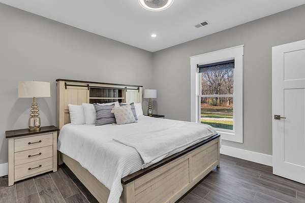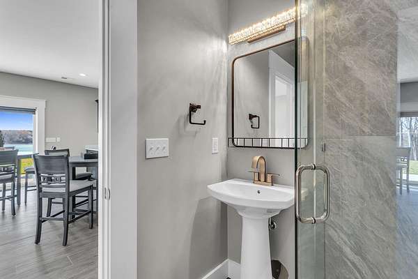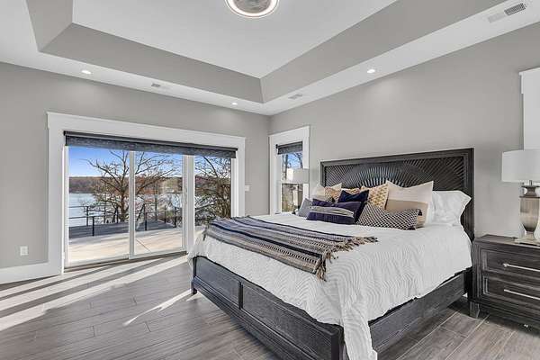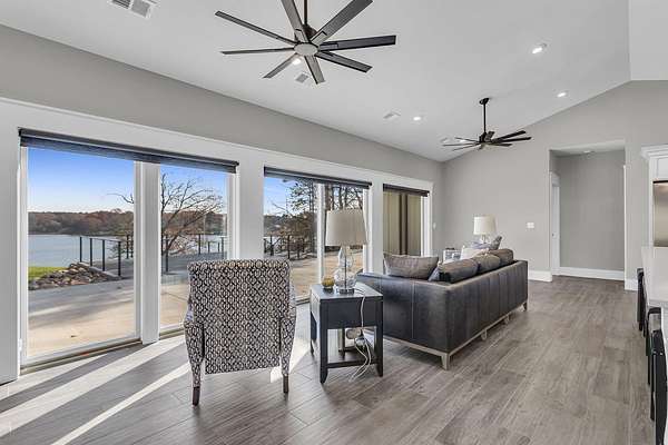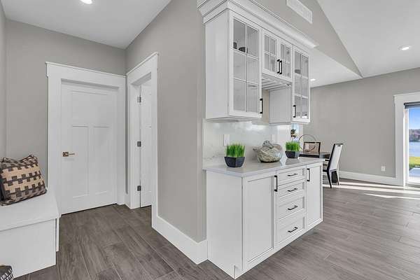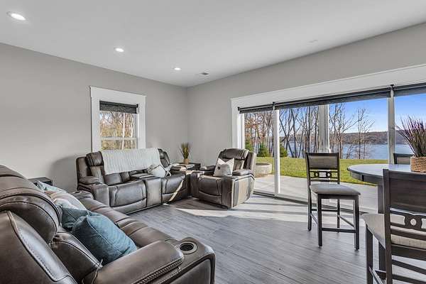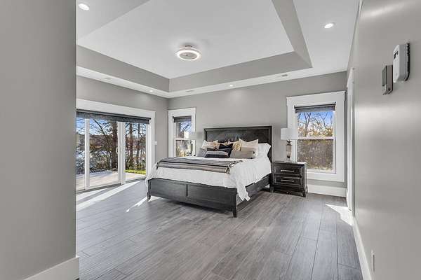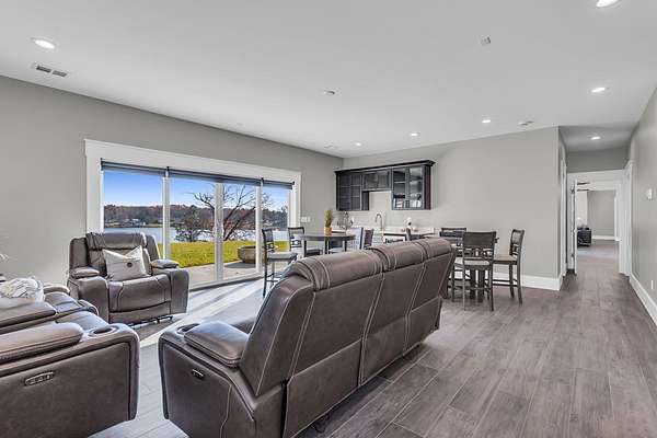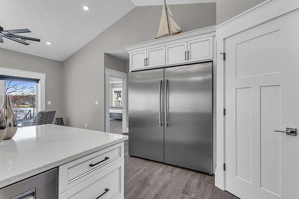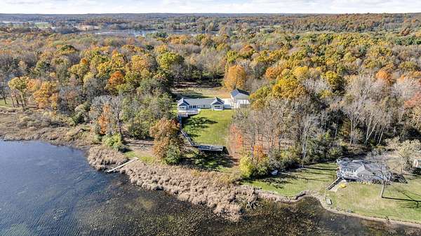 Incredible design, breathtaking views, unmatched privacy, and elevated finishes define this extraordinary lakefront retreat on all-sports Crispell Lake. This newly constructed sprawling ranch offers true main-level living with multiple inviting spaces for relaxing and entertaining, 3 bedrooms and 3 bathrooms. The gourmet kitchen shines with expansive prep areas, walk-in pantry, chef's gas range, oversized built-in refrigerator and freezer, kettle faucet, and stunning stone countertops with seating for 6+. Heated floors add comfort throughout. The primary suite is a private sanctuary with a remarkable walk-in closet, spa-like bath, and direct access to the patio. Outdoors, enjoy terraced decking to the water's edge, multiple lounging areas, sweeping lake views, and unforgettable sunsets with 100 ft of frontage. A 2-car garage and large pole barn for all of your lake toys complete this exceptional property.