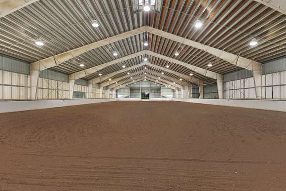 The expansive 80 x 220 indoor riding arena is perfect for year-round training and events, and is complemented by a heated viewing lounge for comfortable spectating. The large office suite is ideal for managing equestrian operations or personal business.