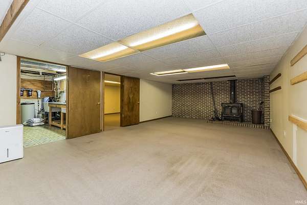 Spacious All-Brick Ranch with Barn on Nearly 4 Acres Across from Prairie Creek Reservoir. This well-maintained one-story brick home with finished basement offers the best of country living with modern conveniences. Situated on a 3.98-acre lot across from Prairie Creek Reservoir, the property features 2,427 sq ft on the main level plus approximately 1,445 finished sq ft in the basement, a 2-car attached garage, and a versatile 40' x 40' barn. Inside, the main level includes: A spacious kitchen with dining area; Living room with wood-burning fireplace & built-in bookshelves; Utility room with built-in desk, folding counter, wall ironing board, large pantry, and half bath; Sunroom with luxury vinyl tile, patio access, and supplemental baseboard heat; Main bedroom suite with walk-in closet, linen closet, & attached bath with walk-in shower; Two additional bedrooms and an updated hall bath. The finished basement expands your living space with two open areas, a workshop, a flex room, half bath, & wood-burning stove. Additional highlights include alarm system, replacement windows, new bath vent fans, & whole-house Generac generator for peace of mind. The 40' x 40' barn once housed horse stalls (the wood was repurposed into the home during construction). Today it offers a 16' overhead door, heated workshop, and abundant storage space. Two propane tanks service the home and barn, with seller-reported heating costs of $2,000-$2,400 per year. This property is a rare find -- offering space, functionality, and scenic surroundings just steps from the water.