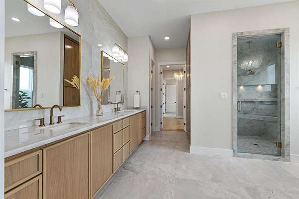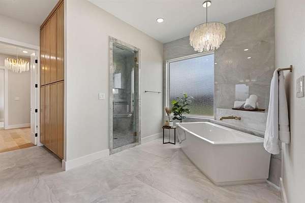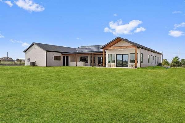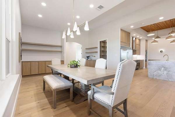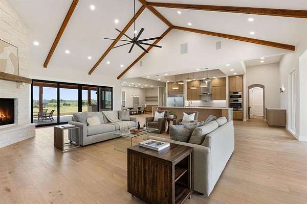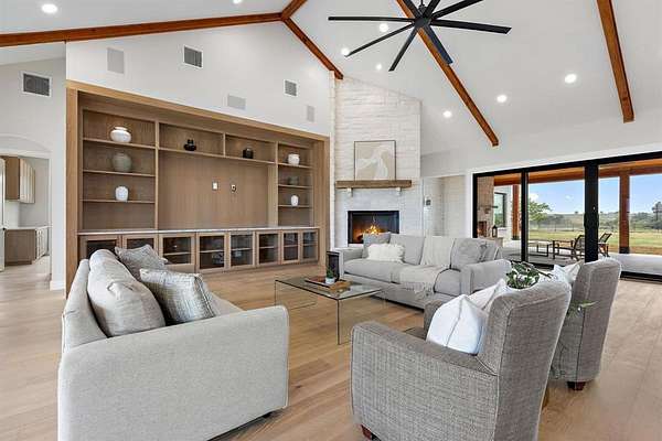 Architecturally Curated on a pristine water view 2-acre lot, this architect-designed single-story residence presents a refined synthesis of spatial flow, material integrity, and livable elegance. Encompassing 4,438 square feet of thoughtfully articulated interiors, the home is defined by its clean lines, functional programming, and seamless connection to the landscape. Anchored by an expansive great room with panoramic sight-lines to the rear patio, the heart of the home integrates a chef-caliber kitchen, a scullery-style walk-in pantry, and a casual breakfast area that opens to an outdoor grilling station -- all configured to support both intimate living and elevated entertaining. Clerestory windows and a strategic array of glass flood the main living zones with natural light while preserving privacy. The primary suite is set apart in its own wing, designed as a tranquil retreat with a spa-inspired bath featuring dual vanities, soaking tub, walk-in steam shower, and direct access to a fully outfitted dressing room and utility corridor. A dedicated office sits quietly at the front of the home, ideal for focused work or creative pursuits. Three secondary bedrooms, each with en-suite or adjacent baths and walk-in closets, are discretely situated along a private hallway, offering both separation and cohesion in the home's overall spatial plan. Additional highlights include a pool bath, storage-equipped mudroom, and an oversized 3-car garage with built-in storage alcove. Outdoors, a covered patio invites year-round enjoyment with provisions for a future pool, capturing the home's balance of indoor luxury and outdoor potential. The scale of the lot allows for privacy, future enhancements, and an estate-like presence -- all within a single-level footprint designed for long-term livability. This is a residence that speaks to discerning buyers who value architectural integrity, spatial efficiency, and a strong dialogue between structure and site.