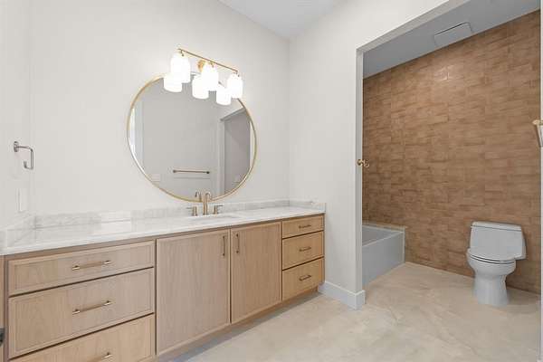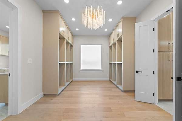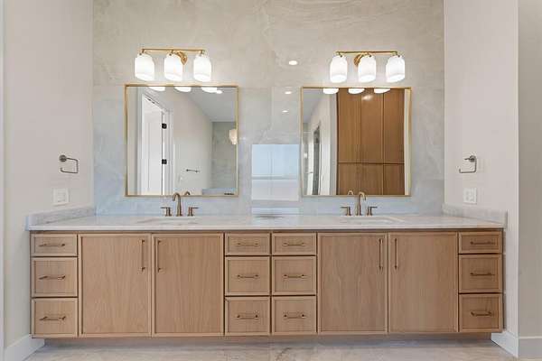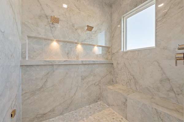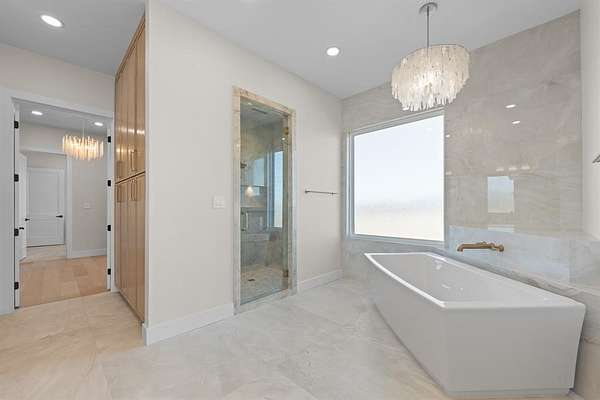 The primary suite offers a private retreat with spa-inspired luxury -- including a freestanding soaking tub, oversized walk-in shower, dual vanities, and an expansive custom closet designed for both style and functionality.