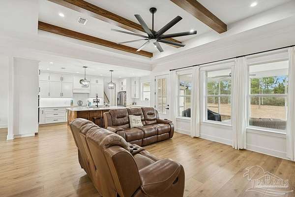 Wallace Lake School Zone | 4 Acres | Gated North Diamond Estates | 4 Bed/2 Bath + Office/Bonus | 30x50 Enclosed Shop Nestled on a quiet cul-de-sac within the prestigious, Gated North Diamond Estates, this exceptional custom-built home by Jameson Construction offers privacy, craftsmanship, and space in a highly sought-after estate community surrounded by large parcels and luxury homes. The exterior showcases timeless brick with board-and-batten accents, black gutters, and permanent Govee exterior lighting. Inside, thoughtful design and upscale finishes are evident throughout, including LVP flooring throughout, tile bathrooms, shiplap entryway, and custom ceiling beams in the living room. The living area features an electric fireplace with hidden media controls and clean built-in detailing. The kitchen is outfitted with custom soft-close cabinetry, built-in appliances, and a custom pantry with Charles Phillips doors and built-ins. The laundry room continues the elevated feel with built-in cabinetry, a sink, and brick paver flooring. The primary suite offers a spacious tiled shower, double vanity, large walk-in closet, and a dedicated makeup vanity. Additional bedrooms feature custom backdrops, and built-ins are included in select closets. A flexible playroom with a closet provides versatility and can function as a 4th bedroom if desired. Upstairs, an additional 300+- sq ft of finished space with LVP flooring and a mini-split system offers excellent bonus or flex space. Outdoor living is equally impressive with a large screened porch , 30x50 enclosed shop and 4 acres of usable land. Located in one of the area's most desirable gated communities, this home offers the perfect balance of luxury, functionality, and privacy--just minutes from town.