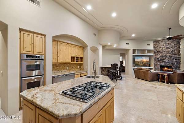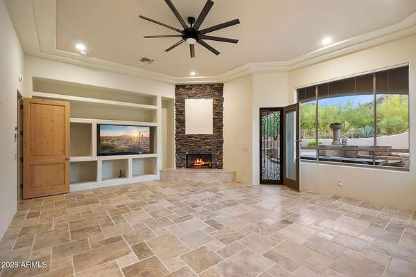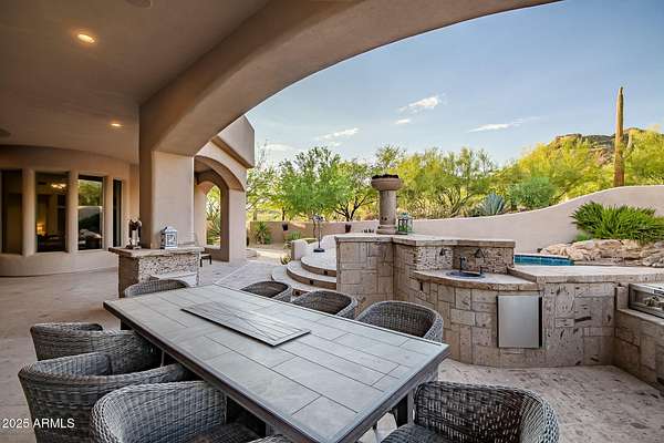 From cowboy boots to candlelit dinners - this Carefree escape is where desert magic meets everyday luxury. Perched in the Black Mountain Foothills, mountain views wrap around you while a Pebble Tec pool, bubbling spa, and fire-lit courtyard set the scene for unforgettable nights. Inside, it's all about living big: Sub-Zero fridge + freezer drawers, wine bar, Cafe dishwasher, and a master suite that spoils with dual closets, fireplace, and a spa shower built for five-star living. Every bedroom has a walk-in closet, plus there is a spectacular office with gorgeous mountain views for work-life balance. Private, gated, and just minutes from Carefree's dining, wine, art, and festivals - this isn't just a home, it's the lifestyle you've been chasing. *House is being sold with all furnishings.*