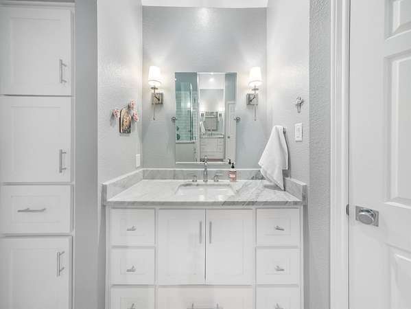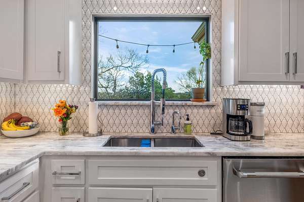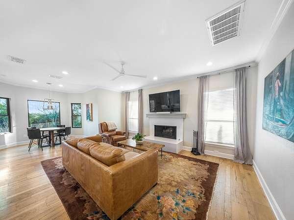 Tucked away on a quiet cul-de-sac in the coveted River Place area, 6505 Epping Forest Cove offers refined Hill Country living on an expansive 1.6-acre deep lot. This private oasis delivers sweeping views from every room, abundant natural light, and a rare sense of space and serenity-while still enjoying a convenient Austin location. The interior has been completely transformed from top to bottom, featuring updated flooring, trim, designer lighting, new exterior doors and windows, and thoughtfully curated finishes throughout. At the heart of the home, the chef's kitchen shines with custom cabinetry, all-new stainless appliances, updated countertops, and a striking backsplash-perfect for entertaining or everyday living. A cozy fireplace anchors the main living area, creating a warm and inviting atmosphere. The primary suite is a true retreat, complete with a spa-like bathroom showcasing a freestanding soaking tub, luxurious finishes, and a calming, resort-inspired feel. Secondary bedrooms are thoughtfully located upstairs alongside a spacious game room, offering flexibility for family living, guests, or work-from-home needs. Step outside to the large back deck and take in panoramic Hill Country views surrounded by mature trees and exceptional privacy-ideal for relaxing, entertaining, or simply enjoying the peaceful setting. Located in award-winning Leander ISD, this exceptional property seamlessly blends luxury, comfort, privacy, and convenience in one of Austin's most desirable settings.