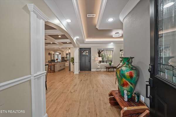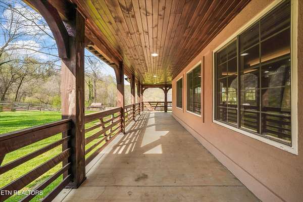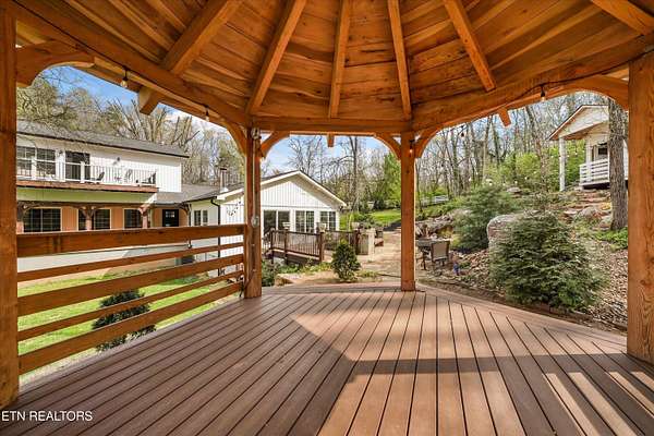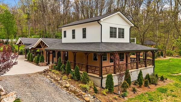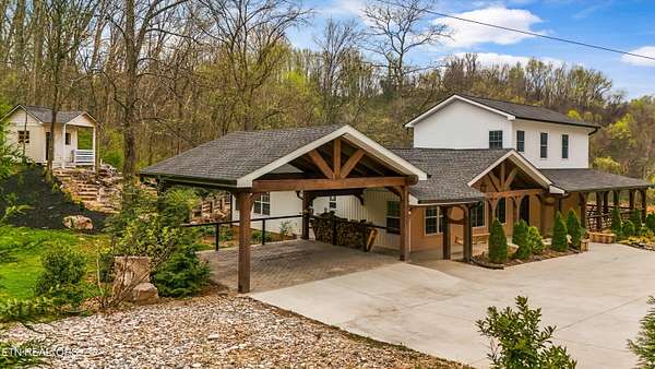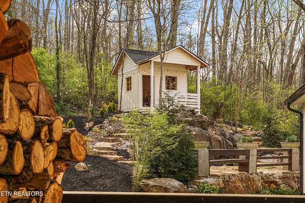 Discover the perfect blend of rustic elegance and modern comfort in this tastefully updated Knoxville retreat. Situated on over 5 private, wooded acres, this property offers a rare level of serenity just minutes from the Down Town Knoxville & The Univeristy of Tennessee. The home's exterior is defined by a stunning 600 sq. ft. wrap-around patio porch, featuring massive custom wood beam timbers that create an immediate sense of mountain-modern luxury. Inside, you'll find thoughtful updates throughout that honor the home's unique character while providing contemporary convenience. The ''outdoor living'' experience extends deep into the acreage, where you'll find a charming open-air cabin--perfect for an artist's studio, meditation space, or unique entertaining spot. Relax by the tranquil waterfall feature and pond, or enjoy the peaceful surroundings from the classic gazebo. Developer/Multi-Family Opportunity: A significant value-add to this property is the existing approval for an additional home to be built on the back acreage. Whether you are looking to create a multi-generational family compound or build an investment property to sell or rent, the groundwork has already been laid. Experience ultimate privacy and artisan craftsmanship at this one-of-a-kind South Knoxville estate. Schedule your private tour of 6505 Neubert Springs Road today!