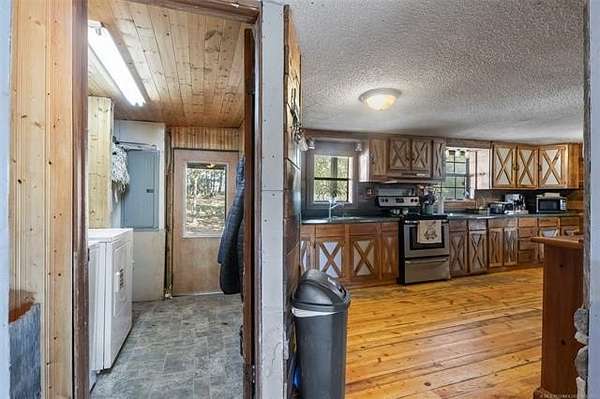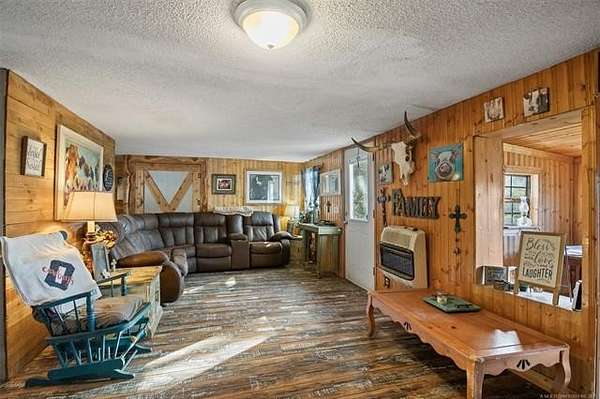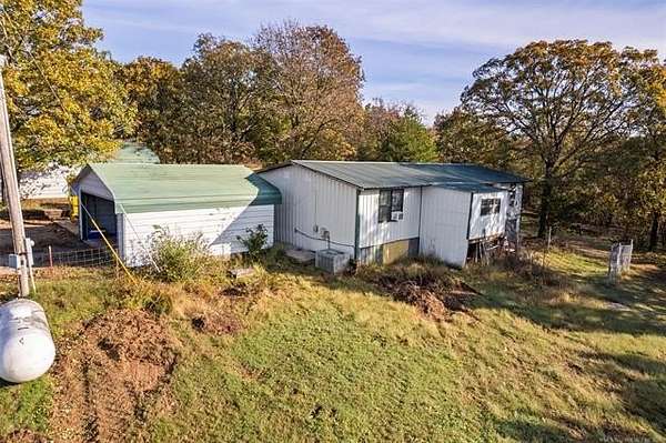 Escape to peaceful country living with this 3 bedroom, 2 bath manufactured home nestled on approximately 5 acres (+/-) surrounded by mature trees, open space, and a charming wet-weather creek that adds to the natural serenity of the property. Whether you're looking for a homestead, weekend getaway, or a project with potential, this property checks the boxes for privacy, space, and opportunity. The home offers a functional layout with a split floor plan--but does need some TLC, making it a great option for someone ready to roll up their sleeves and bring it back to life. With some updates and vision, this could become the perfect country retreat or income-producing property. Outside, the land is partially fenced and offers plenty of room for animals, gardening, a shop, or future builds. The surrounding wooded areas provide shade, wildlife sightings, and that quiet rural feel everyone is searching for. Electrical has been updated on one end of home, new pex all throughout. Home is sold AS-IS, WHERE-IS. BONUS: This property has 1 water meter and 2 electric poles with 1 electric meter. Property is less than 1 hr to Tulsa, 5 miles from Will Rogers Turnpike, approximately 45 min to Grand Lake, approximately 45 min to Oologah Lake and approximately 30 min to Claremore Lake. Seller is willing to remove mobile if desired within 7 days of closing.