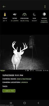Welcome to our little cabin in the woods. This small little 500 SF cabin is sitting on a stunning 40-acre tract located just north of Lavaca. The little one room cabin is a hunters dream equipped with all the necessities. Features a full kitchen with full bath and enough room for a bed and living area. A side shed has been added to fit a washer and dryer hook-up. This small cabin would allow you a place to live while you build your dream home on that perfect spot. This is truly a majestic piece of property featuring untouched land and a gentle trickling stream. There are several selectively carved trails that provide easy access, making it a lovely walk as you explore everything this property has to offer. Among its features are established hunting blinds, a 40ft connex box, food plots that are ready for use. An older hand-dug well can be found at an old homesite situated in the back southwest corner of the property. This property is a perfect canvas for you to carve out your homesite and build your dream home. It offers ample space for hunting and room for your children to roam freely. Whether you're dreaming of a peaceful retreat, a hunting getaway, or your future home site, this one ticks all the boxes. The property has already been surveyed. This 40 acre property is also one of the few properties left that will convey with the mineral rights. Seller draws a monthly check from the gas company, making this an added investment. Come take a look-don't let this incredible parcel pass you by!