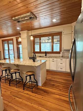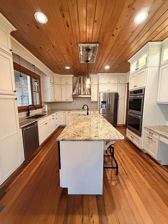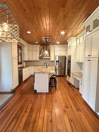 Truly a one of a kind property in Columbia County. 5.01 acres in Appling in a cul-de-sac w/a barn. 4 Bedrooms, 2.5 Baths, All brick ranch. Totally re-done chef's kitchen! Cabinets w/soft close and pull out drawers. Custom re-claimed wood vent hood, double wall ovens, granite counters, large island w/built in microwave & prep sink and ss appliances (refrigerator remains). Spectacular cypress floors throughout (except wet areas)! Front and back porches w/pine tongue & groove ceilings. Tongue and groove ceilings also in foyer, great room and kitchen. Great room with masonry fireplace (w/Vermont insert). Very large barn (20x30 w/wide covered porches front and back) is insulated and has a full kitchen and 1/2 bath. There is also a phone/cable, pot belly stove and 2-10x10 sliding doors in barn. If you are looking for peace and quiet this is the property for you! Will sell fast...Easy to show!