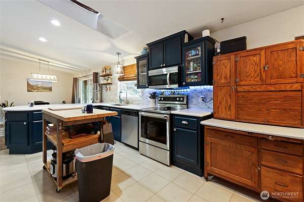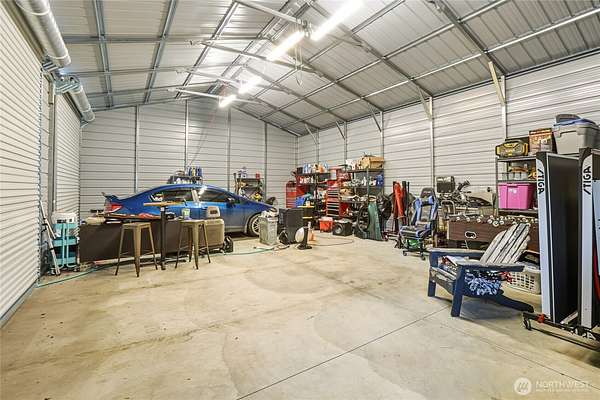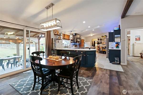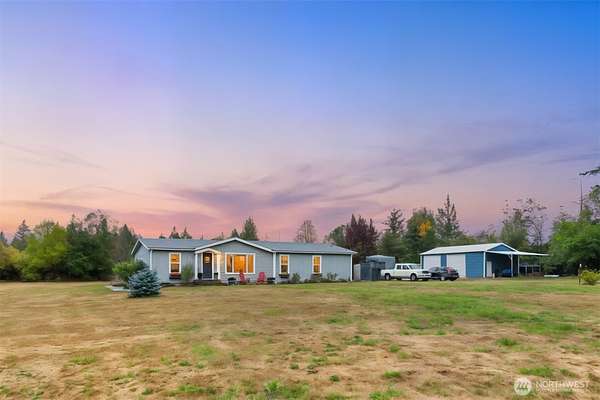 Five usable park-like acres with brand-new roof and 2+ car garage/shop (2025)! This lovingly updated 3 bedroom + den/office home offers an open floor plan with vaulted ceilings, new flooring and paint, remodeled bathrooms, and a modern kitchen with new countertops, glass tile backsplash, and stainless steel appliances. Pellet stove and central A/C for year-round comfort. Outside you will find a huge patio expanding your living space as well as fresh landscaping, raised garden beds, fruit trees, many useful outbuildings, fencing for animals, wired for generator, RV hookup, and an 8'x'20' shipping container for extra storage. This move-in-ready home offers room to spread out and enjoy the country. Perfect for a hobby farm, bring your animals!