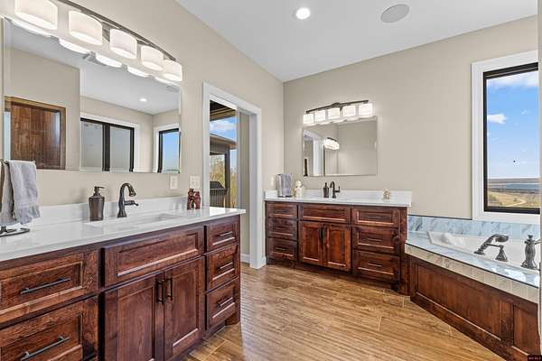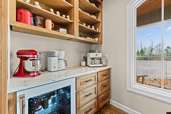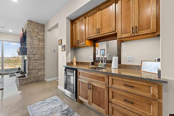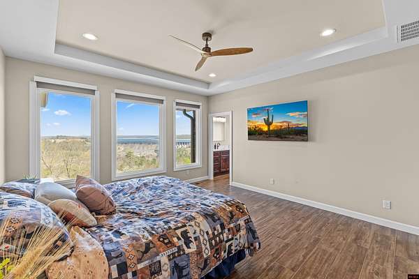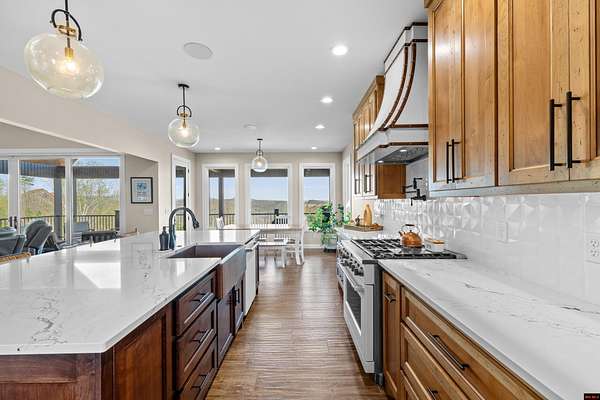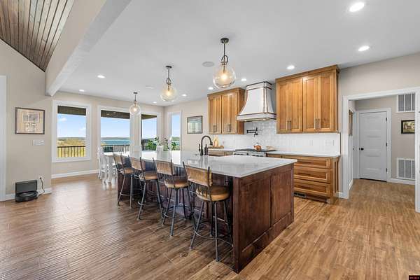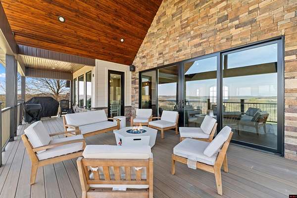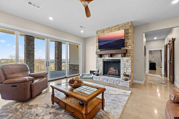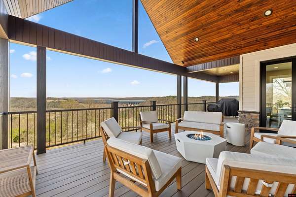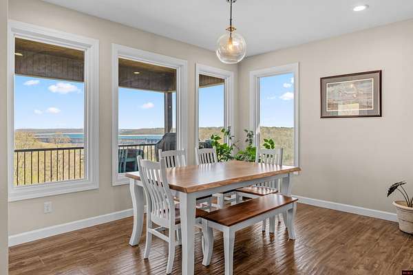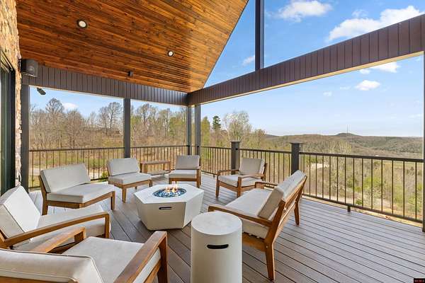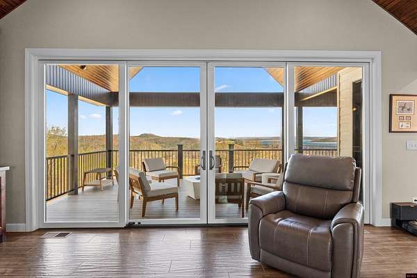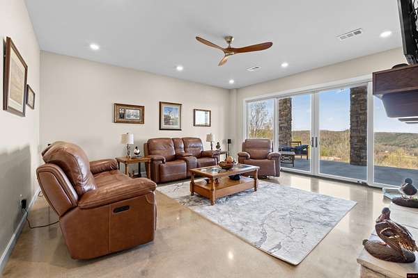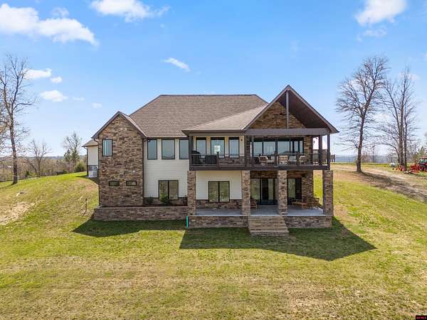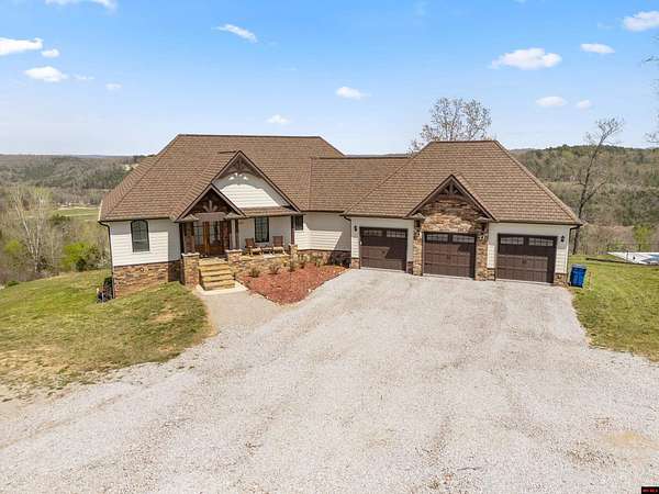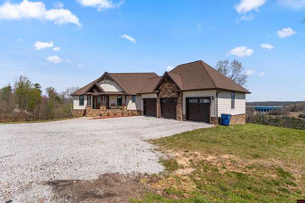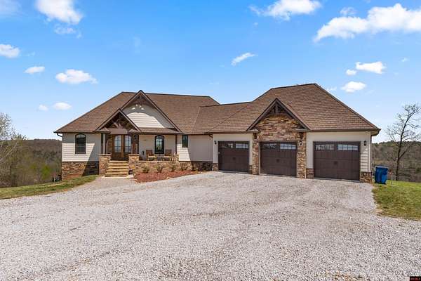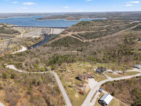 A perfect blend of luxury, comfort and beautiful views. Experience modern living in this two-year-old custom-built home. This home features 3 bedrooms, 3.5 bathrooms, office, and a large hobby room that is ideal for both work and relaxation. The open concept layout creates an inviting space for entertaining and breathtaking views of Norfork Lake, Dam, and Norfork River. A chefs luxury kitchen offers Café appliances, custom knotty alder cabinetry, and elegant Cambria quartz countertops. Enjoy the modern convenience of a smart home system, security cameras and real time notifications. Additional features include three car garage, porcelain tile flooring upstairs, polished concrete downstairs, main level laundry room and all-in-one washer/dryer downstairs, underground utilities and a Generac Whole Home Generator. This beautiful property includes 33 acres m/l, ideal for hunting, hiking or enjoying nature with a creek that flows into Norfork River. This home is in a private neighborhood.
