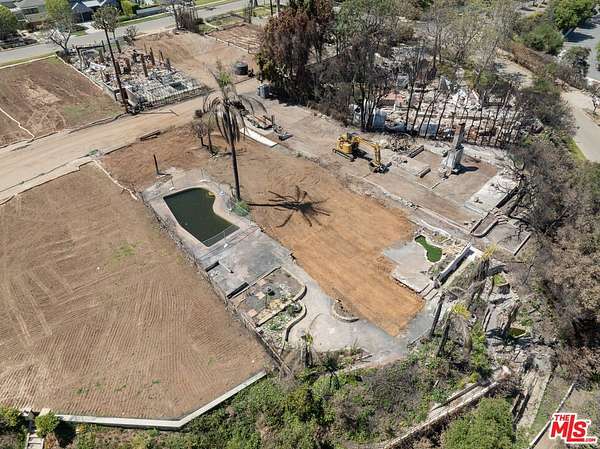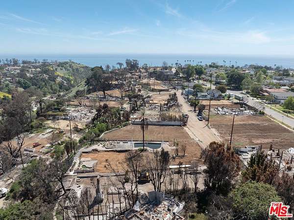 One of the best lots on Erskine. Mostly flat with a finished hillside. This is a 13803 square foot lot with potential to build a beautiful home with ocean and canyon view. House was 3049 sf. Walking distance to the Palisades Village and the beach. The sellers of this property want the buyer to know that the family has been here since 1955 and put 70 years of love and care into the property, only to lose it in the Palisades Fire. The landscape in front with meandering walkways, waterfalls and ponds, was a labor of love weekend after weekend of this family working together over three generations to create what was a beautiful place. The seller is hopeful that whoever buys the property knows that this is a special place. The property has a level entrance on the Bowdoin Alley side where the previous house had two, two car garages with a small studio apartment besides them. At the front of the property on Erskine Dr. side, there is a large, permitted retaining wall halfway up the bank. Below the retaining wall there are terraced landscape walls for planting. To enter the property from Erskine Dr. you walk through a small wrought iron fence on to meandering concrete and stone walkway with an iron handrail following the path. The path has a pond and sitting area midway up that is fed by a manmade waterfall coming from an upper larger pond. The upper pond has a fountain with its own custom rock waterfall and flagstone deck. The water rapids travel underneath a custom arched foot bridge. There are great planting beds along the path and plenty of concrete seating for relaxation and meditation. Above the foot bridge is an interesting, custom brick and stone hardscape with great accents. The path ascends to a concrete patio overlook where you have a great view of Temescal canyon all the way to the ocean.