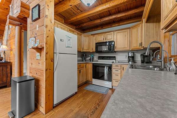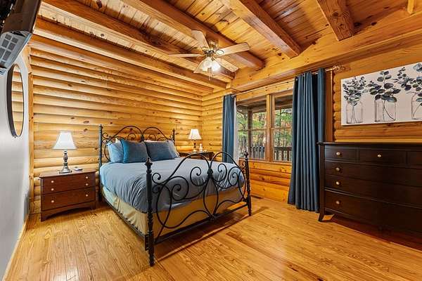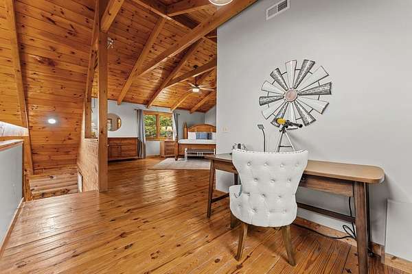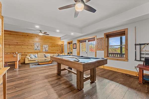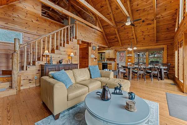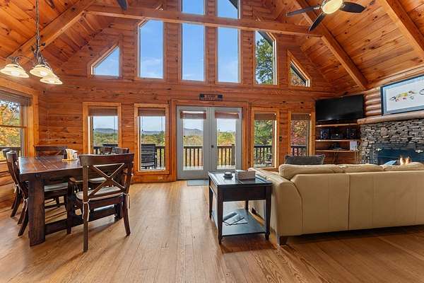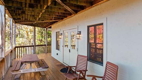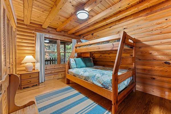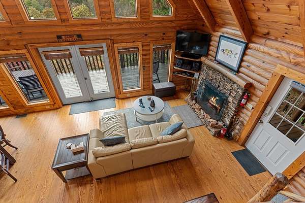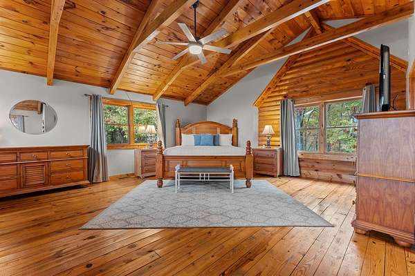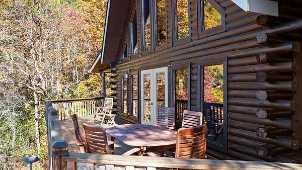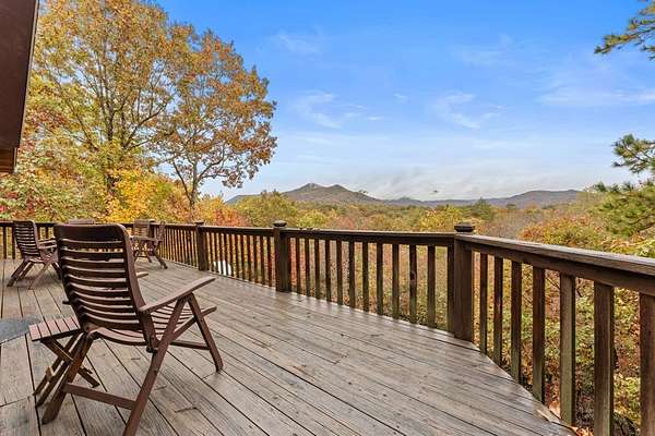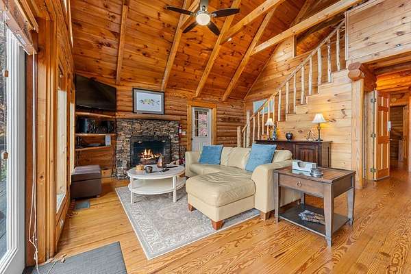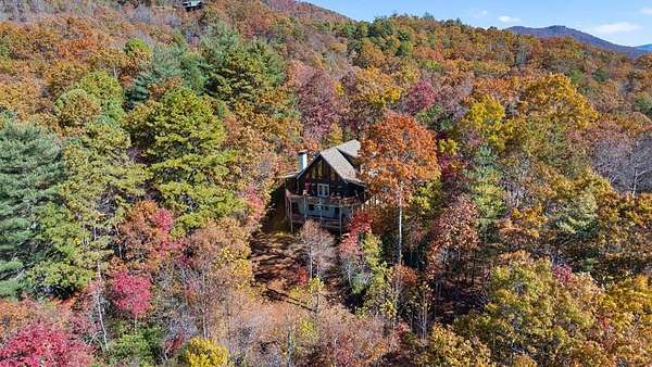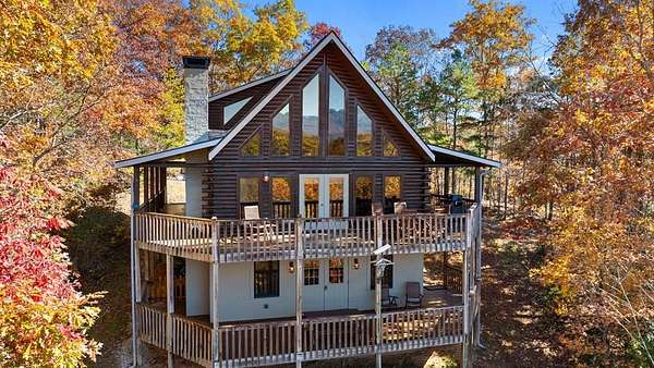 Experience stunning, long-range mountain and sunset views from this custom-built Southland Log Home! Featuring 4 bedrooms and 3 baths, this fully furnished, turnkey vacation rental offers the perfect blend of rustic charm and modern comfort. Enjoy pine hardwood and updated LVP flooring, double vanities in every bathroom, and stack stone wood burning fireplace. The spacious loft-style primary suite boasts breathtaking mountain views, while the main level includes two bedrooms and laundry for easy living. The lower level is designed for fun with a pool table, foosball, wet bar, and guest suite. Quality furnishings from Pottery Barn, Stanley, and Bassett, two leather couches, and stylish dcor make this home move-in ready. New 2024 roof with metal fascia and Hardy Board soffits. Includes two additional parcels with well water rights to a neighborhood well and expired septic permits. Easy paved and gravel access--no 4x4 needed--plus wraparound decks, a low-maintenance yard, and space to add a garage. Convenient to Franklin and Bryson City, NC! Virtual tour! https://youtu.be/VRfvQlzw7lA?si=SGMLSvR1pFD6cGl3