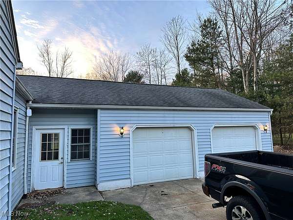 Charming 3 bedroom home with expansive 22x22 great room with a wood-burning fireplace and wall of windows, an indoor bar (complete with cabinets/sink/refrigerator), a full basement, 2-car garage, and 40x36 barn on 1.72 acres! Two bedrooms and a full bath on the first floor, along with a spacious kitchen with stainless steel appliances, and dining room with bay window/storage; the bar and great room each step out onto the tiered concrete patio overlooking the private treed yard. Second floor has the third bedroom with built-in drawers, a sitting area, and a room with built-in's ideal for an office or playroom. Property is landscaped, driveway is concrete, part of the rear yard is fenced-in and has raised garden beds. Additional outdoor storage on the concrete pad outside of the barn. Barn has two large sections, a lean-to, and electric. Updates include furnace/air conditioning (2024), tying the home into gas, reverse osmosis system for kitchen and bar, filaments in hot water tank, and garden beds. This home has so much to offer! Bring your fresh ideas and move in before the holidays!
