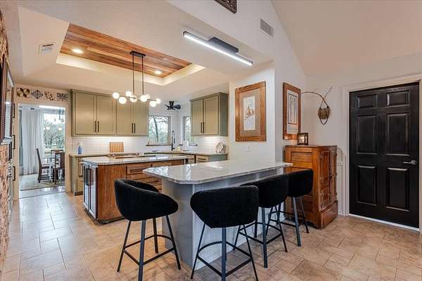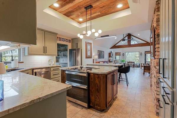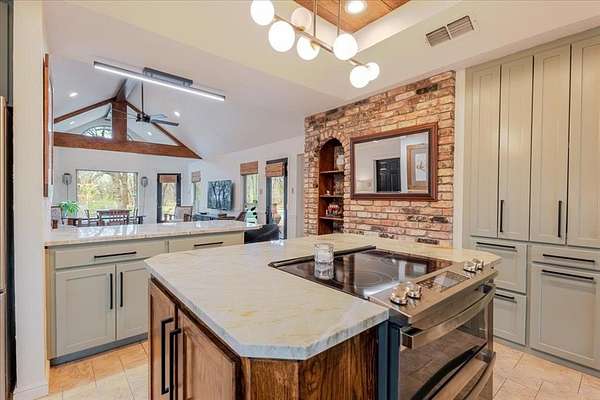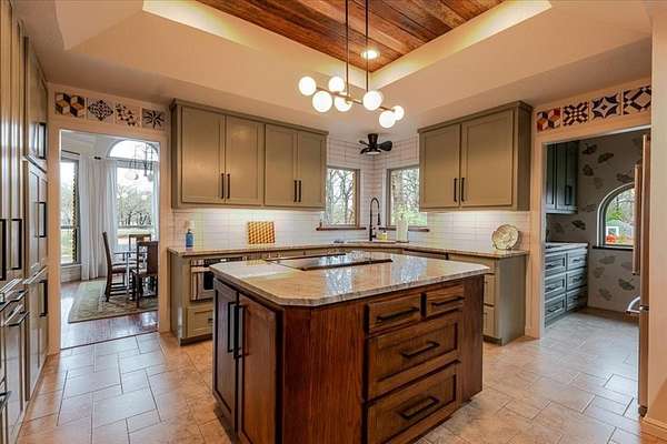 Inside, the kitchen was beautifully remodeled about two years ago with quartzite countertops, a workstation sink, a double oven, and a convenient butler’s pantry—perfect for both everyday living and entertaining. The home also offers two living areas, a formal dining room, a spacious study that could easily function as a fourth bedroom, and ample storage.