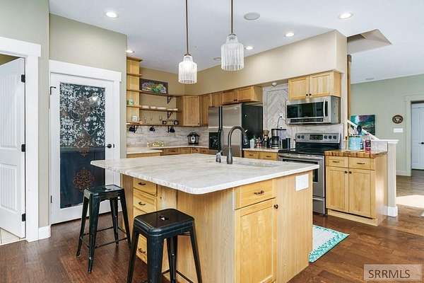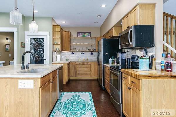 Welcome to your own secluded sanctuary-this inviting three-story, single-family home is on approximately 1.59 acres of peaceful, rural landscape with a year-round creek. Inside, the spacious home offers 2580 +/- sq ft, featuring 4 bedrooms and 3 baths, office/den, vaulted ceilings, an open-style layout, and an updated kitchen boasting stone countertops, large pantry storage, and unique vintage accents-like a homestead butcher block, reclaimed barnwood pieces, and an antique door from Inkom's original city hall. The master suite is a true retreat, offering a spacious layout, a cozy sitting area, and an ensuite bathroom. Outdoors, the property is beautifully landscaped with mature trees, diverse shrubs, an orchard, and garden space. Additional amenities include: a sunroom, multiple outbuildings (including one with a charming playhouse above), a large walk-in crawlspace/cellar, and a shed. Home also has a solar power system boasting energy efficiency and sustainability. Adventure enthusiasts will appreciate the easy access to nearby skiing and hiking. This is the perfect permanent residence or vacation home. Call your favorite agent for a tour today!