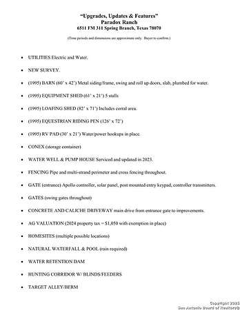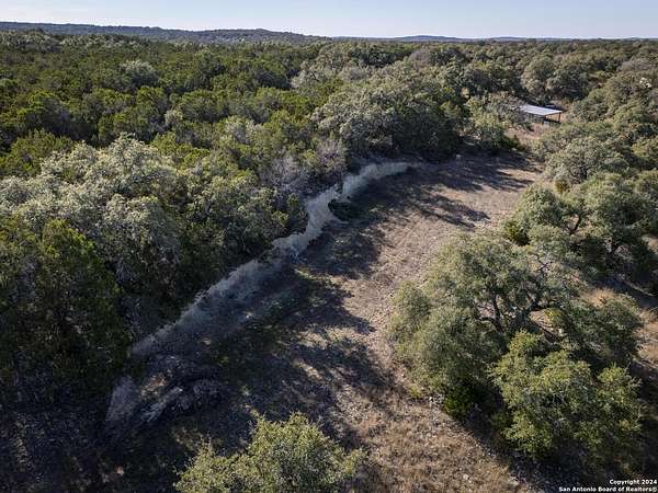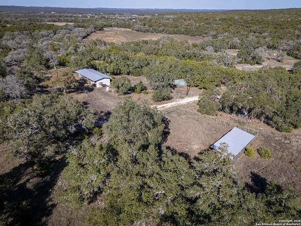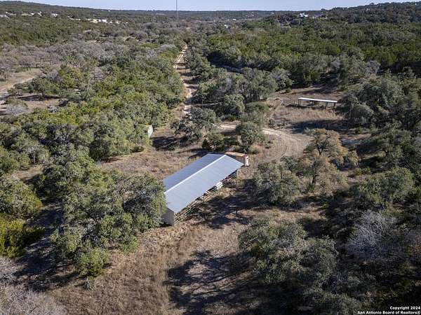 Opportunities: Equestrian, Residential, Wedding Event Center, Wine Venue, BNB, Tiny Houses, Exotics, Hunting Lodge ------- blank canvas. 1). A situation or object in which nothing has yet been planned, so that someone is free to decide what should happen or be done. 2). Paradox Ranch. ------- This beautiful gated and fenced 51.68 acre ranch features a 2520sq' metal framed drive-through barn, a 1281sq' 5 stall equipment shed, a loafing shed with attached corral, a 9,072sq' equestrian riding pen, a 630sq' RV pad with water/electric hookups, water well & pump house. This property is under an Agriculture Valuation exemption ($951.00 in 2025) to minimize property taxes. Paradox Ranch definitely defines a blank canvas. Relaxation from the city bustle sets in as you pass through the automated gate onto the concrete drive. Security, serenity and seclusion best describe Paradox Ranch. A few feet up on the right you will see a natural waterfall feature and limestone pool. The owners have invested in a water retention dam to capture flow from the seasonal unnamed creek. Add a supplemental water well and a Texas Hill Country windmill for a perfect fit. Over the years heavy rains have allowed this grotto-like feature to create a natural water source for wildlife. As well as a peaceful place to simply meditate and hang out. Mid way up the caliche base road on the left you will find a target alley and berm. This natural high bluff provides an ideal spot for target practice, plinking and rifle sighting. The road continues up the hill to the outbuildings and other improvements. Throughout the property are a variety of trees such as the Texas Oak, Live Oak, Red Oak and Texas Juniper. Whitetail deer, Axis deer, turkey and dove can be found on Paradox Ranch. ------- Feel free to explore all that Paradox Ranch has to offer. Experience vast views of Twin Sisters Peak and the Texas Hill Country from numerous possible homesites. The well-groomed ranch roads lead to several hunting corridors. Numerous hunting blinds and feeders have been set in place. Perimeter and cross fencing (pole and multi-strand) as well as swing gates run throughout the ranch. Miller Creek parallels the far west of the property line. ------- Paradox Ranch is situated conveniently to Spring Branch, Bulverde, Blanco, Boerne, New Braunfels and San Antonio. Just a short drive to HWY 281 and HWY 46 allow for plenty of shopping, restaurants, hospitals, entertainment and golf. The highly acclaimed Smithson Valley High School and Middle School are located within a short distance. Enjoy the waters of The Guadalupe River, Blanco River and Canyon Lake. ------- The possible opportunities for this property are numerous. Including equestrian, wedding/party event center, wine venue, BNB, homestead, hunting lodge/lease, residential development or commercial business. So come splash some color onto this blank canvas with your paint brush of dreams!