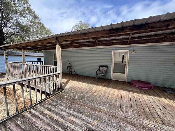 5.892 acres on Clear Creek - private, wooded and full of possibilities. This spacious home features a thoughtful split floor plan, a huge kitchen, and a large living room with a cozy library area. The oversized primary suite offers two large walk-in closets (one recently used as an office) and French doors into the primary bath with garden tub, separate shower and double vanity - plenty of room to unwind. Upgrades include sheetrock walls, crown and corner molding throughout. Outdoor living is exceptional with a 10' x 56' covered porch plus a 16' x 16' open deck that overlook the tranquil, wooded acreage. The property is ideal for outdoor adventures - room for ATV/RV play, creating hiking trails down to the Creek, or developing your dream estate. Located down a wooded private drive off the road, the parcel also includes two yard buildings and a workshop/storage building - plenty of space for toys, tools and projects. A rare buy for buyers seeking privacy, acreage and character.