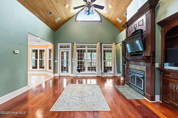 - Blinds/Shades, Bookcases, Ceiling Fan(s), High Ceilings, Master Downstairs, Pantry, Solid Surface, Sound System, Tray Ceiling(s), Vaulted Ceiling(s), Walk-In Closet(s), Walk-In Shower