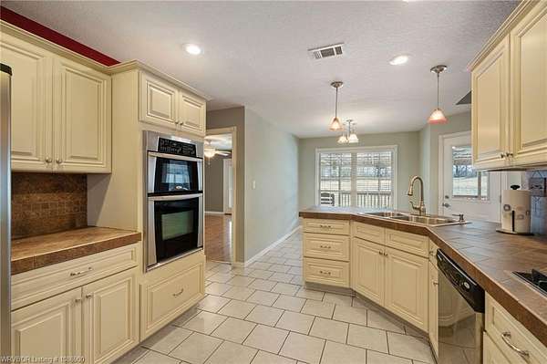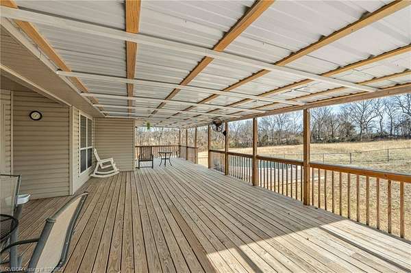 Newer 4 bed/ 2bath home on 5.22 acres just North of Van Buren. Most of the home has hardwood flooring. Spacious kitchen with ample cabinetry, tile countertops and a pantry. The primary suite has a large walk-in closet, whirlpool tub and walk-in tile shower. Split bedroom plan, wood burning fireplace. Laundry room has a sink and coat closet. Huge covered back deck (less than two years old). Fenced backyard. Oversized garage with extra storage room. The acreage is mostly level and has a nice view.