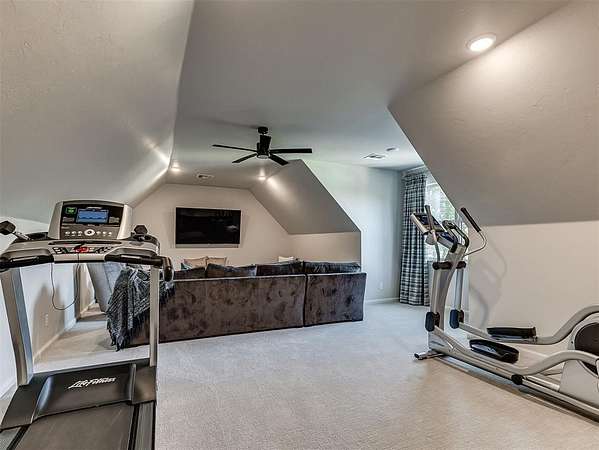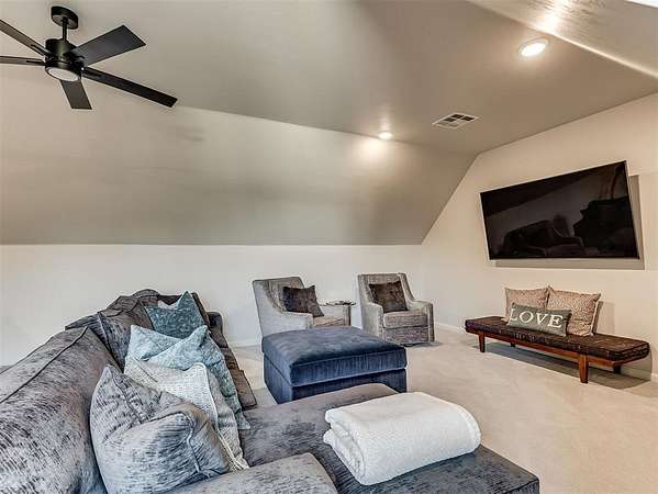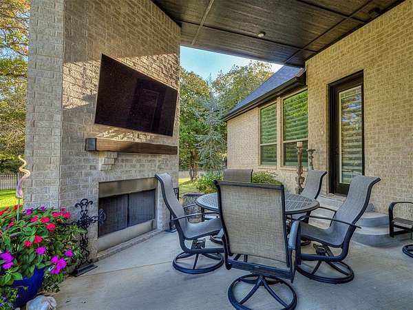YOU WONT WANT TO MISS THIS BEAUTIFUL OPEN AND BRIGHT HOME ON A HEAVILY WOODED 1.95 ACRE LOT IN N/E EDMOND. ALL BEDROOMS PLUS A MEDIA/GAME/FLEX ROOM ON THE FIRST LEVEL WITH ANOTHER GAME/MEDIA ROOM OF 655 SQ FT MOL WITH FULL BATH ON THE SECOND LEVEL. THE SPACIOUS LIVING ROOM FEATURES CYPRESS WOOD BEAMS AND STONE FIREPLACE. LARGE KITCHEN WITH CENTER ISLAND, LOTS OF CABINETS AND BUILT IN REFRIGERATOR/FREEZER. PRIMARY BEDROOM HAS SEPARATE VANITIES, CLOSETS AND MAKEUP VANITY WITH SEPARATE WALK IN SHOWER AND TUB. THE PATIO IS PERFECT FOR QUIET EVENINGS OR ENTERTAINING WITH STONE FIREPLACE AND TV CONNECTIONS. THERE ARE CUSTOM BLINDS AND WINDOW TREATMENTS THROUGHOUT. THE LOCATION IS A VERY PEACEFULL SETTING WITH EASY ACCESS TO I-35. THERE IS ROOM FOR A POOL IN THE BACK YARD AND THE SEMI PRIVATE POND AND AREAS AROUND IT ARE MAINTAINED BY THE HOA.