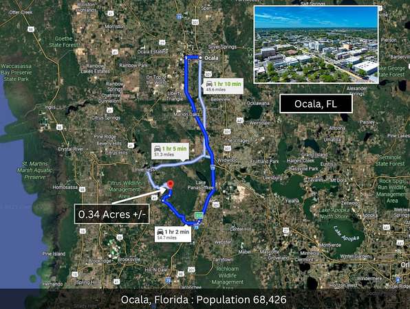 Est $210/moEnjoy the charm of Floral City on this over One Third Acre vacant lot with No HOA, No CDD, and No Flood zone! Zoned for Mobile Homes, Single Family dwellings, Barndominiums, Tiny Homes, and Container Homes, this property sits on a paved county road just minutes from lakes, rivers, and the Withlacoochee State Trail. Only 15 minutes to Inverness, 25 minutes to Brooksville, 35 minutes to The Villages, and 40 minutes to Spring Hill. Fish, boat, or explore nearby Crystal River and Homosassa Springs, just 45 minutes away, or take a quick drive to Tampa or Orlando International Airports. No time limit to build, and financing is available with 20% down, meaning your Florida dream is closer than you think!
