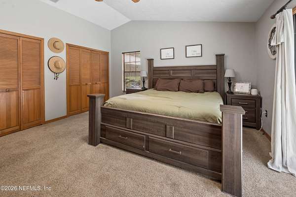 - Breakfast Bar, Built-In Features, Ceiling Fan(s), Eat-In Kitchen, His and Hers Closets, Split Bedrooms, Tub With Shower Primary Bathroom, Vaulted Ceiling(s)