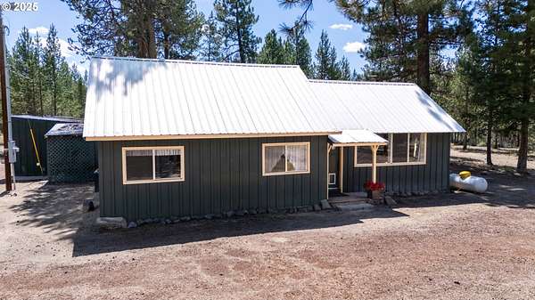 Charming country retreat! This rustic 1-bedroom, 1-bath cabin is tucked away among the pines on 5.72 wooded acres. Offering 921 sq. ft., the cabin is ready for you to enjoy as-is, remodel, or expand for additional living space. Utilities are in place with electricity to the cabin, a well, and a septic system installed in 2007-making the property ideal for future building. Recent updates include fresh interior paint, a new water heater, and a bathroom refresh with new flooring, sink, and toilet. A propane wall heater provides warmth along with a wood stove (not certified). A long freshly graveled driveway provides set-back privacy from the road and several nice spots for RV parking. The property backs to 40 acres of Oregon State Forestry land for added privacy and natural beauty. According to Klamath County Planning, the parcel may be potentially dividable into two lots of at least 2 acres each (buyer to verify).This property also offers easy access from Hwy 97-just a short drive to La Pine, Gilchrist or Crescent, and a bit further to Sunriver for recreation and Bend for all conveniences. A rare opportunity to create your dream getaway or homestead in a peaceful forest setting!