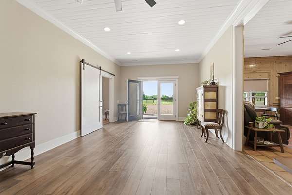 This gated 26 acre estate features a beautiful custom home and barndominum. The gracious, light filled main residence includes a vaulted great room with expansive windows and doors opening to a private terrace. Overlooking the pastures beyond, the space provides for an easy, elegant setting for gathering family and friends. Surrounding the house are perennial beds and mature landscaping including a variety of rare & specimen Japanese maples. The 5 stall barn with tack room and large shop includes a 1548 sq ft one bedroom barn apartment with a full size living room, kitchen, bathroom, office. This wonderful property is ready for operation with a large equipment shed, 2 run-in sheds,4 panel fenced pastures providing the perfect setting for middle Tennesse farm life. A unique opportunity for those seeking proximity with privacy and acreage for any number of uses. A true retreat adjacent to the exclusive residences of the Trubadore.