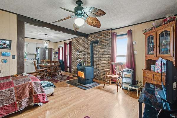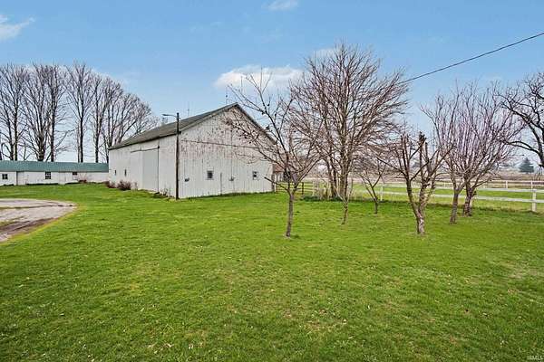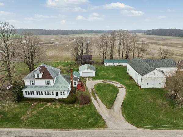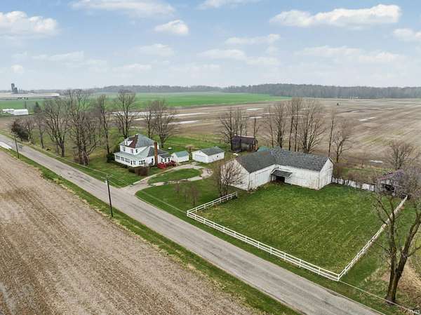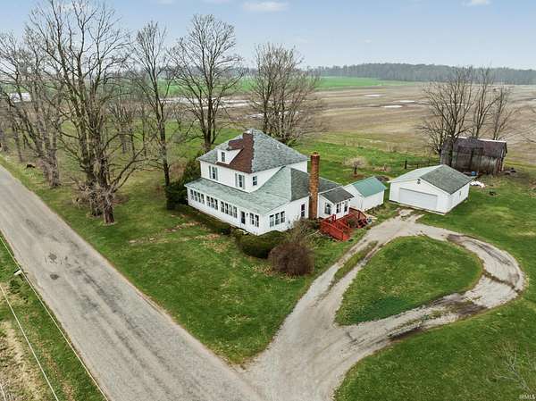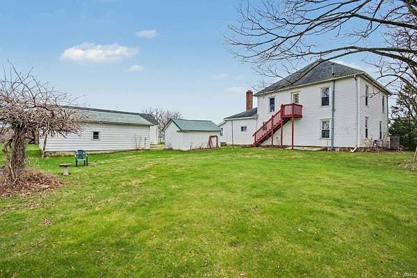 Looking for a home on a few acres with outbuildings just outside of town to make your own? This 4 bed 2.5 bath well maintained farmhouse with an open main floor is perfect for family gatherings! Main floor primary bedroom with half bath, along with main floor full bath and laundry. A canning closet in the basement is waiting to be put to use for the apple, peach, cherry, & red raspberries on the property. The HVAC is serviced regularly, but the pellet stove in the dining room and baseboard heaters upstairs ensure you're extra toasty in the winter. An outside stairway to the 2nd floor opens up rental or multi-generational possibilities. Multiple outbuildings with water, animal fencing, and corn cribs are the cherry on the top of this 3.31 acre property!