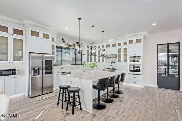Est $11,343/moBeautiful home with 5 bedrooms and an attached casita that has 1 bedroom and 1 bath, 10 ft ceilings and living room is at 14 ft. Oversized garage, RV garage with double doors. Spray foam insulation including garage, 400AMP Electrical panel. Amazing backyard with pool, slide, pool bathroom, built in BBQ and pool bar. Exterior LED lights with smart switches, electrical RV hook up. Irrigated lot, plenty of space for future construction in a farm community.