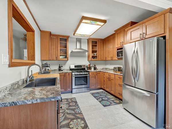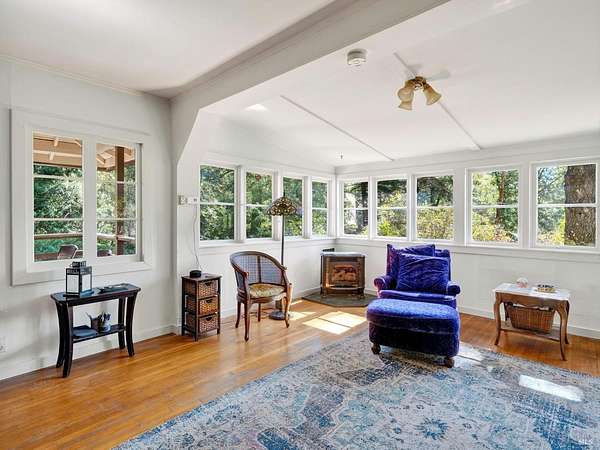 Welcome to this beautiful country paradise set amongst majestic trees of the Pacific Northwest. The three story main house is an amazing mix of 1950's and modern contemporary architecture. Featuring a modern kitchen with granite countertops and stainless steel appliances. Spacious open floor plan. Enjoy the panoramic views from the first floor bedroom. The master bedroom has high vaulted pine ceilings, a loft that was previously used as a yoga room and a private redwood deck, amidst some of the property's walnut trees. One of a kind custom built wooden spiral staircase to access the loft atop the Master Bedroom. UV rated double pane windows throughout the second and third story addition. A cute 675 square foot in law unit, with enough old world charm to make it feel as if you have stepped back into the 1920's, sits just off to the side of the house and right above the garden. The garden is it's own private oasis. Approximately a half acre with an eight foot tall redwood fence offering peace and serenity amongst the walnut and fruit trees. There is also roses, table grapes and plenty of room to add your own personal touch. A fixer with a lot of potential at the top of the property. Zoning is Residential Commercial allowing for endless possibilities.