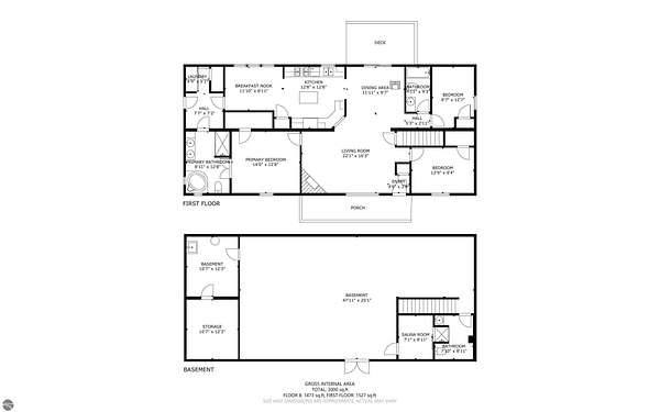 - Basement, Bathroom x 3, Bedroom x 3, Dining Room, Kitchen, Living Room, Sauna