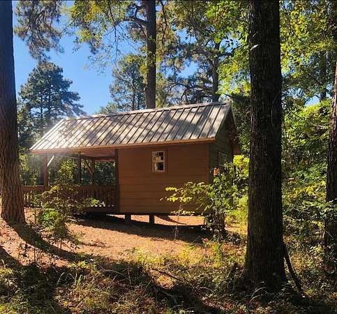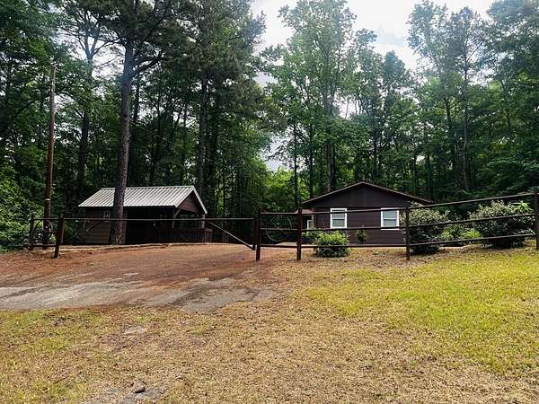 Looking for that rustic, cabin-style retreat close to Toledo Bend Lake with a well-maintained appearance? This furnished 2B/1B brick & wood siding home is tucked among apx. 3.247 acres of mature timber w/apx 525' road frontage. Originally the Geneva Post Office in the early 1980s, this apx 964 sf property was converted into a home/camp w/tile flooring & open concept in main living area w/bedrooms off to each side. Kitchen has tile countertops w/all appliances included & dining area located near front entrance. Additional storage shop, apx 120 sf, has a covered porch w/decking that can be used for entertaining. While the wooded acreage provides privacy & a connection to wildlife, the pipe gate plus fencing provides security & curb-appeal to the property. Ample parking space for RV, boat(s), or future additions. Additional history to this property is some of the Lobanillo Swales of the El Camino Trail. Conveniently located just 15 min from SRA Rec Area for lake access & LA state line.