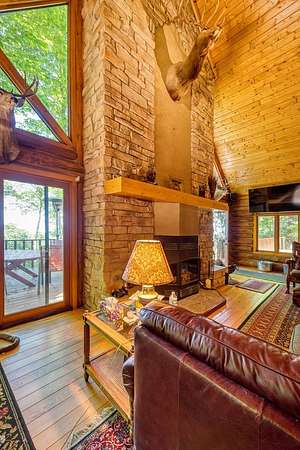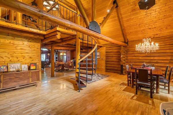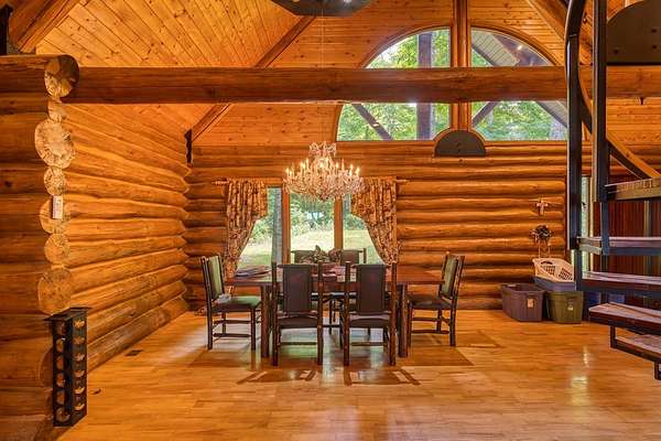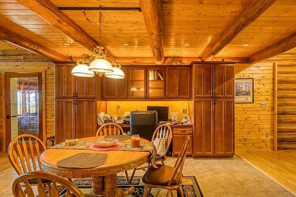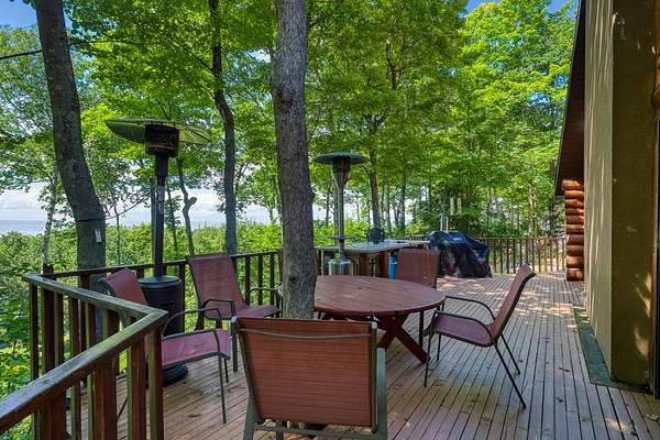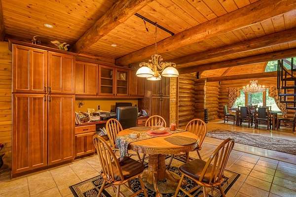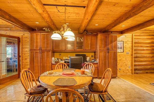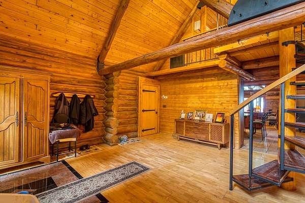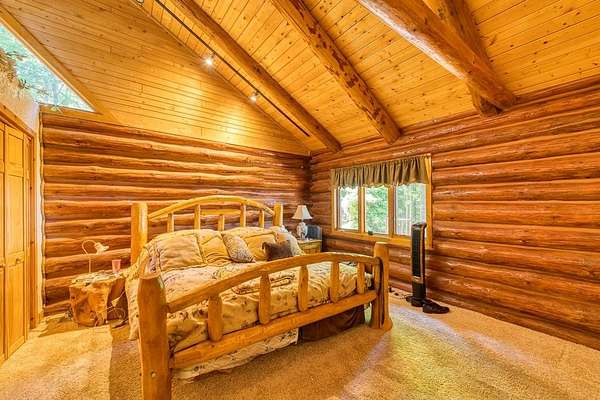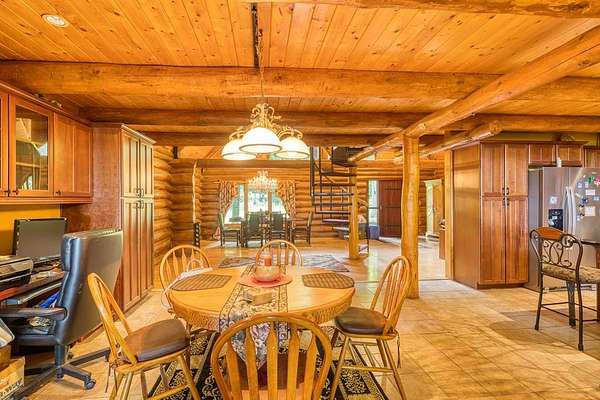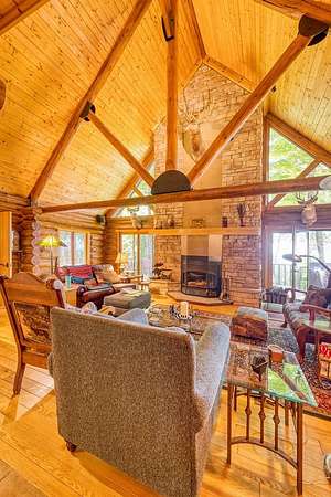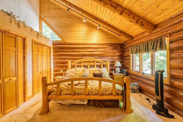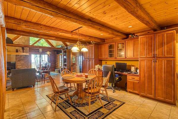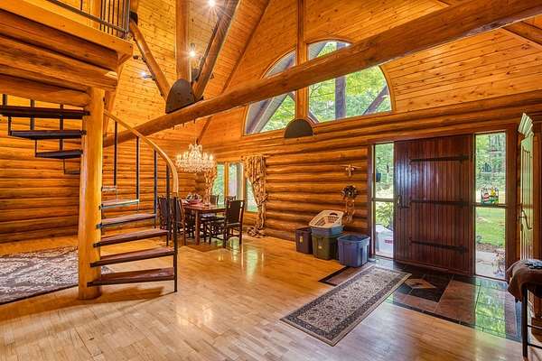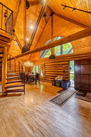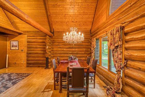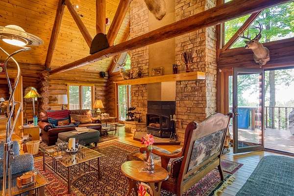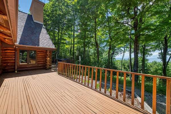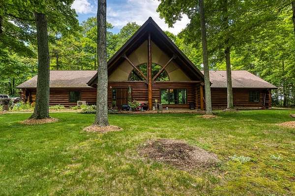 Est $5,511/moMagnificent log home with spectacular water view. Red pine harvested in the Rhinelander area lovingly hand peeled and assembled in a Milwaukee warehouse before being carefully disassembled and relocated to its new home in 2002. This beautiful home has hard wood floors throughout the living area, massive pine beams accentuate the cathedral ceiling in the great room also highlighted by the floor to ceiling wood burning fireplace. There is a spacious deck across the entire front of the home offering spectacular water views. All of the kitchen appliances are newer and there are granite countertops throughout. The entry, dining room and great room offer a vast space for entertaining all overlooked by the loft. This is a wonderful home.