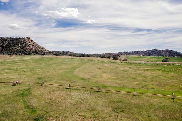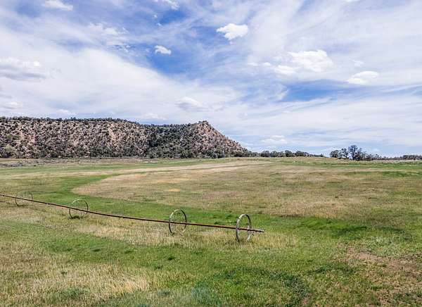 "Under Contract" Highline Meadow 94 encompasses approximately 94 acres, with 60 +/- acres irrigated via gated pipe and side roll using four shares from the Highline Ditch. The gently sloping terrain allows for efficient irrigation, while the surrounding sagebrush and cedar-covered ridges offer natural beauty and privacy. With year-round access from County Road 331, this property combines practicality with a scenic rural setting.