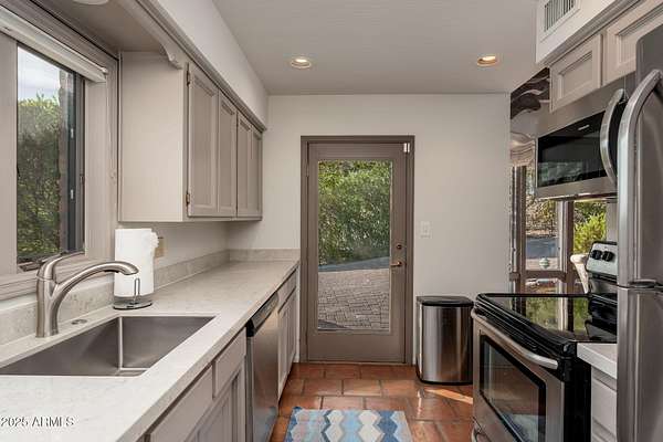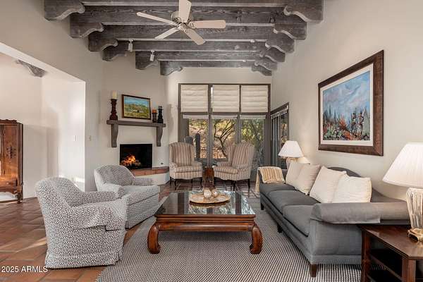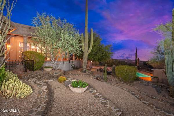 Enjoy exceptional outdoor living with over 1,000 sq ft of covered patios, a built-in BBQ, fire pit, and resort-style pool and spa, all surrounded by lush desert landscaping and generous terracing ideal for relaxing or entertaining against the backdrop of Carefree's spectacular skies.