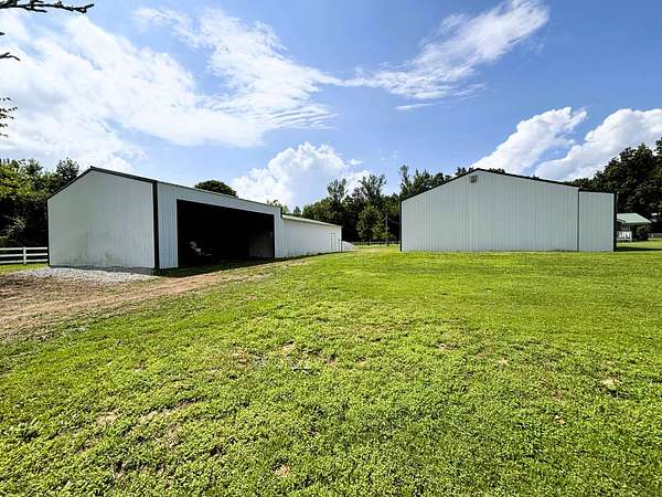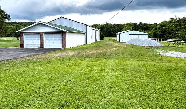 6529 Nat Rogers Road, Boston, KY. This seems too good to be true, but it's not!! *Only 3 miles from the Bluegrass Parkway. 5 beautiful acres that includes (a) a meticulously kept, 1,580 sq.ft., brick ranch home (built new in 1997); (b) a 30' X 30', 2 car detached garage; (c) a 40' X 60' metal shop/barn (commode/sink area as well as a mezzanine with work shop below) with a separate 220amp electric service, electric furnace --15' walls and 13' garage doors; (d) 30' X 40' metal barn w/ 30' X 30' open shed (that 30' X 70' total). The home includes 3 bedrooms, 2 full bathrooms, a large eat-in kitchen, living room and a rear den (w/ wood stove) just off the kitchen. Laminate flooring as well as carpet in the bedrooms. Seller agrees to leave the kitchen appliances and clothes washer and dryer @ the agreed purchase price. This is a MUST SEE !!! So much here for only $450,000.
