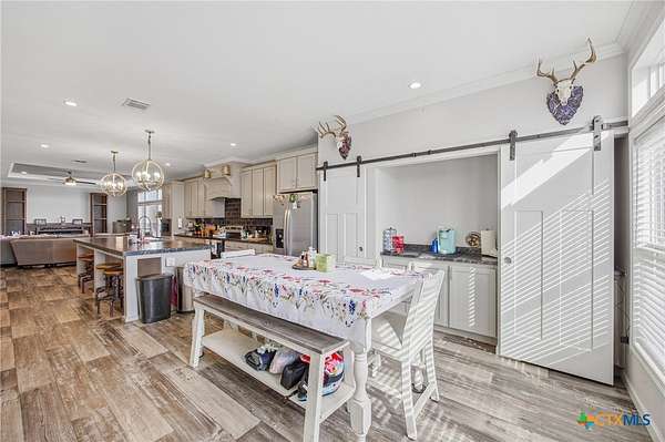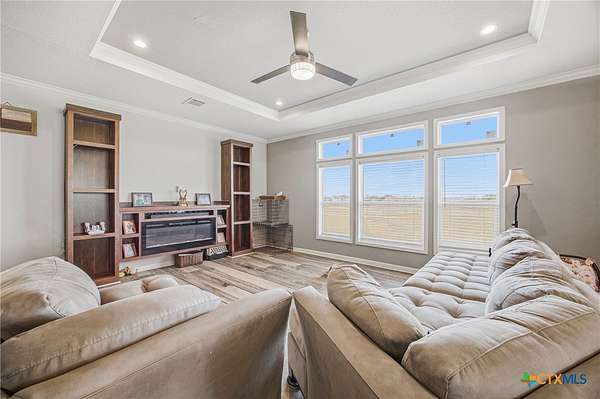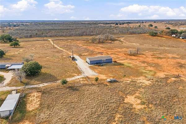 Enjoy modern country living in this thoughtfully upgraded 2022 manufactured home situated on just over two acres in Gonzales County, Texas. This thoughtfully designed 3 bedroom, 2 bathroom home offers an open floor plan that blends comfort and functionality, making it ideal for both everyday living and entertaining. The spacious living area features an electric fireplace that adds warmth and a stylish focal point, while large windows invite natural light and showcase peaceful pasture views. The kitchen flows seamlessly into the living and dining areas, offering ample space for gathering with family and friends. Kitchen features a center island, additional storage, and breakfast bar. The private primary suite serves as a relaxing retreat with an upgraded bathroom featuring a walk-in shower and multiple closets, providing exceptional storage and convenience. Two additional bedrooms offer flexibility for guests, a home office, or hobbies, and are supported by a second full bathroom. Outside, the open acreage provides room to roam and endless possibilities for outdoor enjoyment. The property features a fully fenced yard, ideal for pets or added privacy, along with three security lights for enhanced visibility and peace of mind. With wide-open views of surrounding pastureland, this home offers a true sense of space and tranquility. Built in 2022, this home offers the benefits of newer construction and low-maintenance living while embracing the beauty of rural Gonzales County. Conveniently located with easy access to nearby towns and major routes, this property is well-suited for full-time living, a weekend retreat, or an investment opportunity. If you're searching for a modern manufactured home with land, privacy, and scenic Texas views, this property delivers the perfect balance of comfort, space, and lifestyle. Centrally located with easy access to Austin, Houston, San Antonio, and the Texas Gulf Coast. Welcome home!