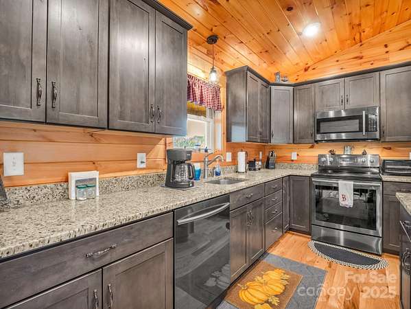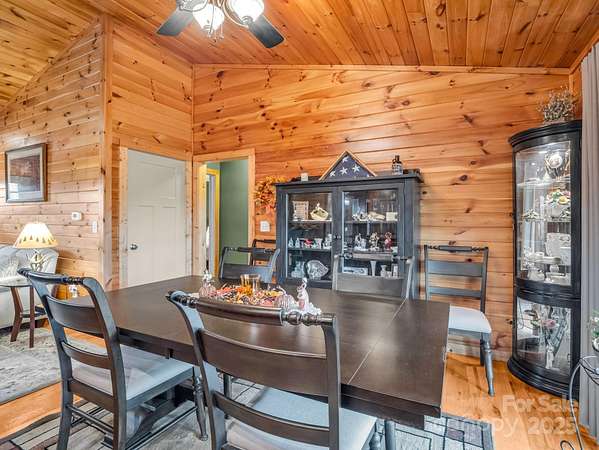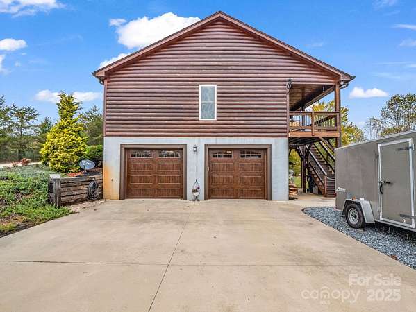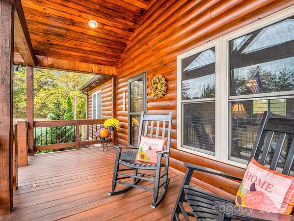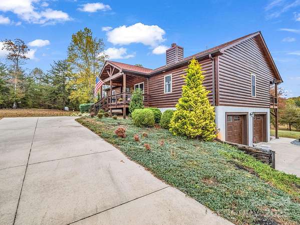 Welcome home! This beautiful log sided home located in the very desirable gated community Hearthstone Ridge has so much to offer. First time on the market, this home is well maintained. Once you enter the front door you will find an open concept, perfect for entertaining. The living room has a 42" woodburning rock fireplace, vaulted ceiling, hardwood floors. The kitchen has granite countertops with tall custom cabinets for extra storage. Sliding doors from the dining area leading out onto the covered porch which extends the entire length of the home. In the primary suite which also has sliding doors leading to the back porch, there is a walk-in closet, ceramic tile bathroom has jacuzzi tub, separate shower, double sink granite vanity. The second bedroom has hardwood floors with plenty of closet space. Bathroom is located in hallway also has granite top vanity and shower. Laundry room is spacious and has a door leading onto the back porch. Downstairs in the basement is the third bedroom currently being used as a multipurpose room. Rough in plumbing ready for a bathroom to be completed. Storage room in basement. The oversized double car garage is big enough for cars and storage. Don't forget about the outside detached 12 X 24 shed with electricity ran to it. This beautiful home sits on 4.6 acres of beauty! Located close to Hwy 221, Interstate 40 and I-26. You are close enough to restaurants, shopping and entertaining but in a secluded setting. This home will not last long!