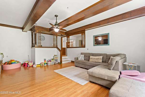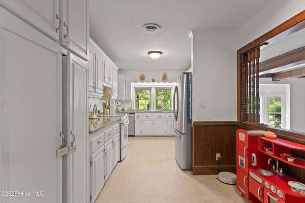 Tucked under a canopy of trees on 2.5+ acres, this 4-bedroom, 3.5-bath home offers over 2,700 sq. ft. of living space, solid bones, and tons of potential. The home is being sold as-is, cash purchase only, and while it needs a bit of TLC, it already has the kind of character and craftsmanship you don't find every day. Inside, you'll find a galley-style kitchen with granite countertops, plenty of cabinetry, and a custom pantry ready for serious storage. The living room showcases wood-beamed ceilings and a brick fireplace wall, adding warmth and personality throughout. The original portion of the home is stick-built, and the addition is manufactured-set on a permanent foundation and finished with matching modern vinyl siding for a cohesive look. Sitting on over 2.5 acres of private, tree-lined land, there's plenty of space to spread out and make it your own - whether you envision gardens, animals, or just a little extra breathing room. Out back is where this property truly shines: - A massive garage/workshop building with power, a full kitchen, bathroom, and loft, offering endless possibilities for work, hobbies, or guest space. - Two additional outbuildings, including a detached garage and extra storage/workspace. - Plenty of room to expand, garden, or simply enjoy your peaceful countryside surroundings. If you're looking for a property with space, character, and potential - one that's ready for your vision - this is it.