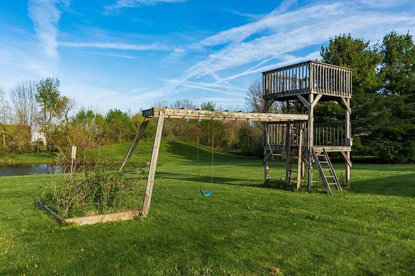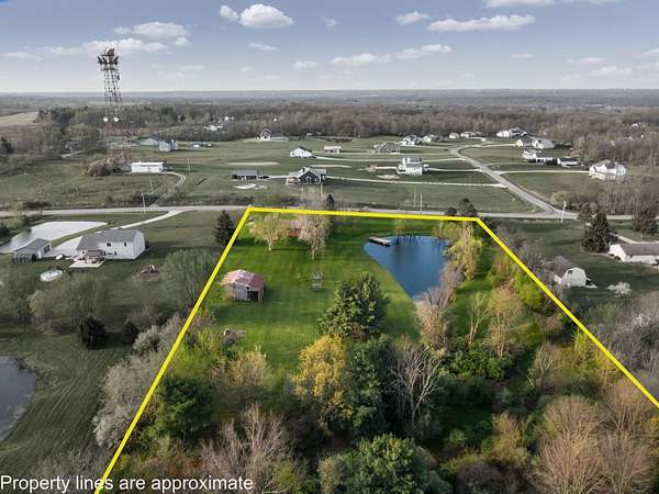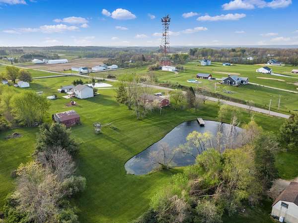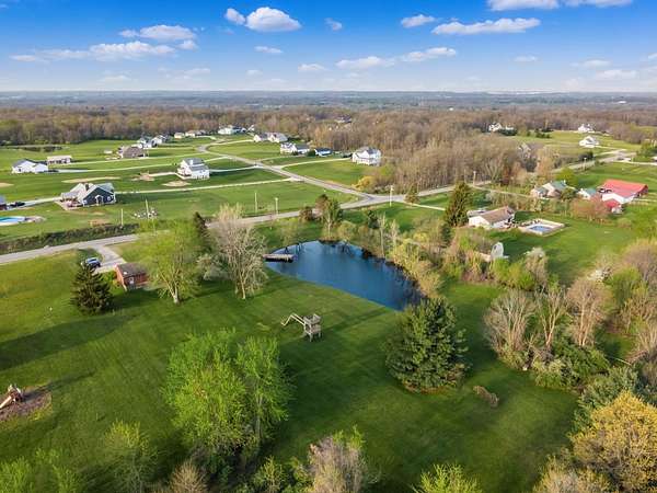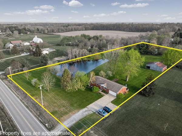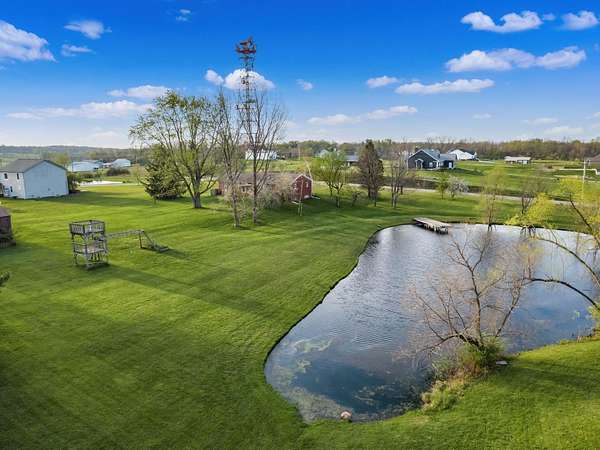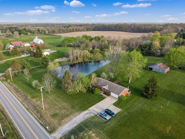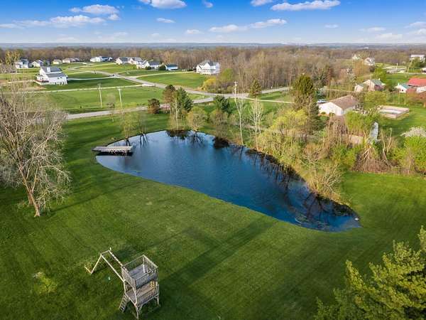 Timeless Brick Ranch on 5 Serene Acres Where Nature Meets Opportunity. Rarely does a property offer the perfect blend of natural beauty and untapped potential in such a prestigious location. Set on 5 sprawling acres in a neighborhood defined by million-dollar new builds, this all-brick ranch is a sanctuary waiting for your personal touch to begin its next chapter. The crown jewel of this estate is the gorgeous, fully stocked pond. Complete with a private dock, it's the ultimate setting for quiet mornings with a fishing line or golden hour sunsets over the water. Land of this size and caliber is a true rarity in this area, offering the peace of the countryside with the security of a high-value investment. Step inside to a home that radiates solid craftsmanship and character. The main level features original hardwood flooring that adds warmth and timeless appeal throughout. While the home is ready for your cosmetic updates, the heavy lifting has already begun with a beautifully updated primary bathroom. The Hobbyist's Dream space is found in The extra-deep garage. Its perfectly suited for a hobby shop, or specialized workspace. The full basement offers a massive footprint with high potential for finishing--perfect for a home theater, gym, or additional living suite. This home has been a garden of love and care for 3 generations and ready for a new era of memories. Whether you envision a modern farmhouse restoration or a contemporary estate, the foundation is here. Don't miss the chance to own a significant piece of land in a premier location. Opportunities like this are few and far between.