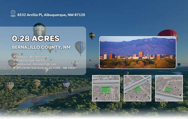 Discover the perfect canvas for your custom home on this .28-acre lot located in the sought-after Volcano Cliffs subdivision on Albuquerque's west side. This spacious homesite sits on a quiet cul-de-sac surrounded by stunning mesa views and beautiful high-desert scenery. With nearby access to Unser Boulevard and Paseo del Norte, you'll enjoy both convenience and a sense of privacy. Design your dream home to take advantage of the area's natural beauty, open skies, and nearby walking trails. A wonderful opportunity to invest in one of Albuquerque's most desirable growing communities.