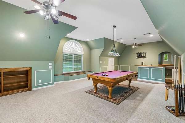 Set on 1.5 beautifully landscaped acres, this impressive 4,009 square foot home offers a perfect blend of space, comfort, and thoughtful design. With 4 bedrooms, 3 full bathrooms, and 2 half bathrooms, the layout provides flexibility for both everyday living and entertaining. Inside, luxury vinyl plank flooring and crown molding flow throughout the home, creating a cohesive and elevated feel. The spacious living room is anchored by a striking stone fireplace with built-in cabinetry, while a private office just off the living area features additional built-ins, ideal for working from home. The eat-in kitchen is well-appointed with granite countertops, stainless steel appliances, and ample space for gathering. The primary suite on the main level offers peaceful backyard views and includes an en-suite bath with dual sinks and a walk-in closet. Two additional bedrooms and full bathrooms are also conveniently located on the first floor. Upstairs, a large game room with a wet bar and half bathroom creates the perfect setting for entertaining, along with a second primary suite featuring its own en-suite bath. Step outside to enjoy the beautifully maintained grounds, complete with a heated saltwater pool and spa, and spacious covered back porch. A large workshop provides additional space for hobbies, storage, or projects. Additional highlights include a three-car garage, brand new energy-efficient windows, and a new roof. 6532 Gehrig is a true escape from the city and offers the best of indoor comfort and expansive outdoor living. Don't miss your chance to make it yours!