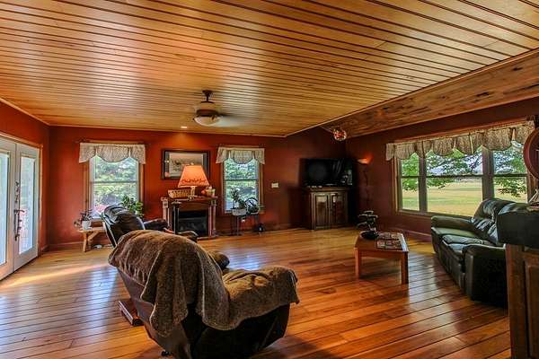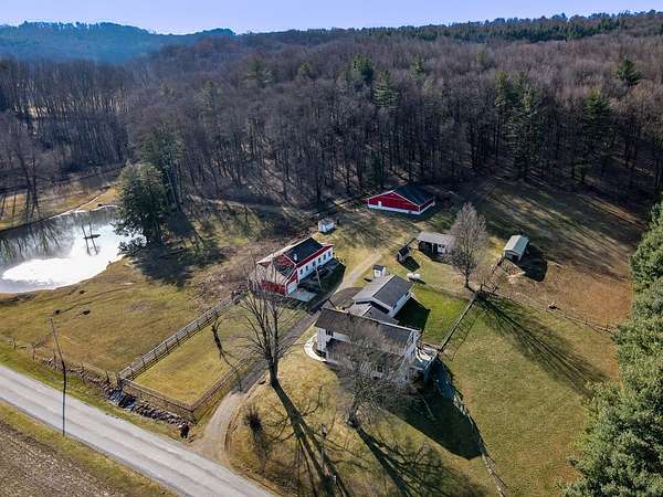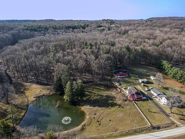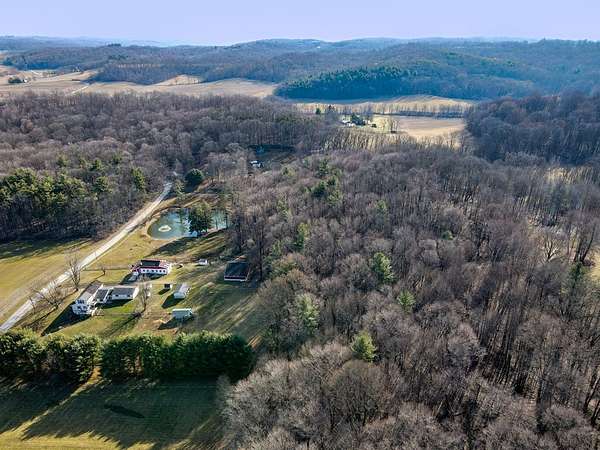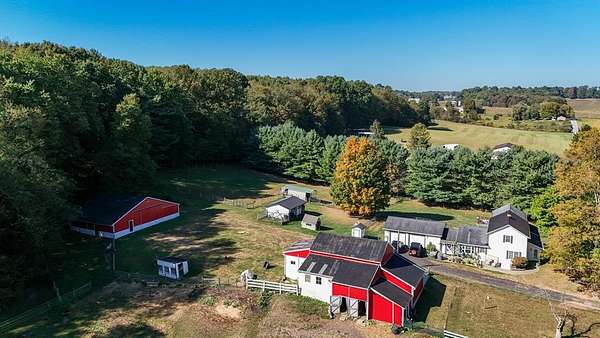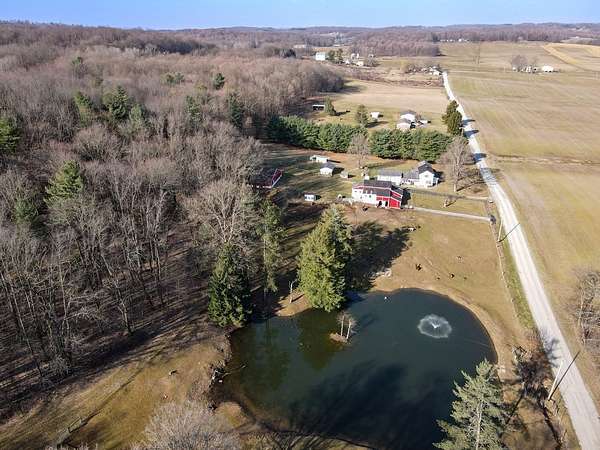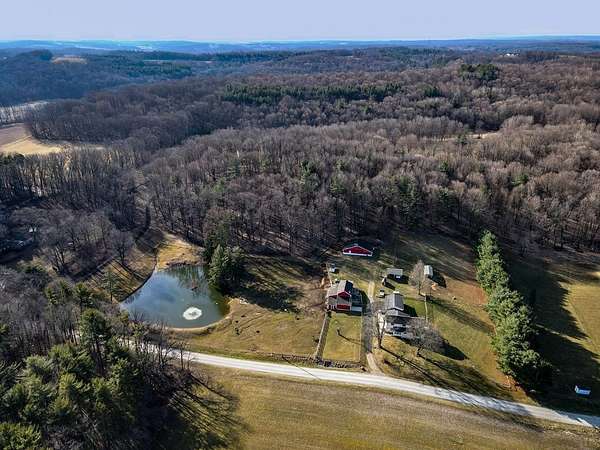 Breathtaking country homestead farm property! 24.5 scenic acres in the Clear Fork school district. This unique property offers stunning views, ~14 wooded acres, a 6-acre hayfield, and a stocked pond w fountain--ideal for homesteading, recreation, excellent hunting, or quiet relaxation. Originally built in 1900 with thoughtful modern additions, the home features 4 bedrooms, 2 baths, multiple living spaces, a spacious dining room, living room, and an expansive great room w gas log fireplace. The primary suite boasts vaulted ceilings, breathtaking views, en suite bath, electric fireplace & a private balcony. The kitchen showcases custom cherry cabinets and a 5-burner gas range. Multiple outbuildings & lean-tos; Barn w several additions & some heated space. 36x56 pole barn with new siding. 2 chicken coops. Currently a working llama farm, this versatile property blends charm, functionality, and natural beauty--all just 50 minutes to Polaris.